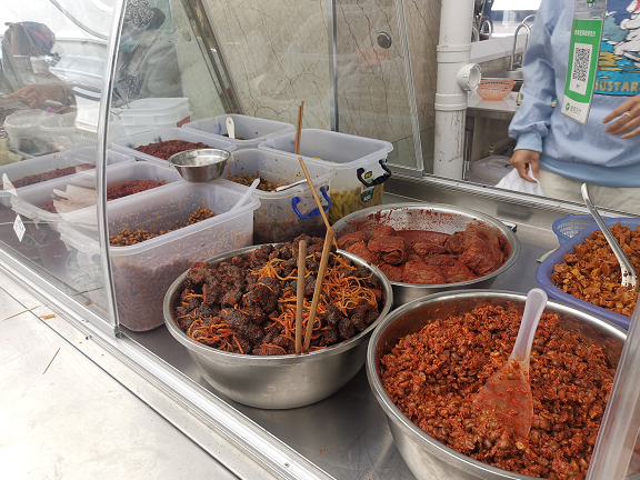 豆腐摊上,热情的嬢嬢对我们招呼道,的确隔很远都能闻到豆浆的香气。