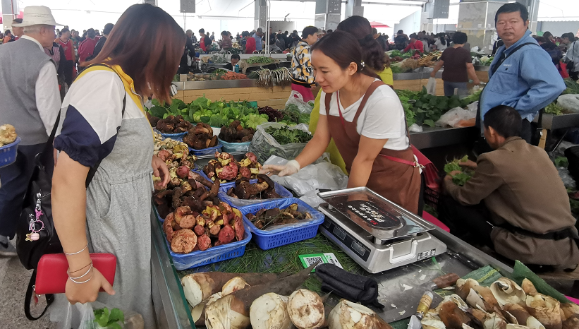 琳琅满目的水果,各类肉、蛋、野生菌……在葫芦商贸城里,你几乎可以买到日常生活所需的很多食材。
