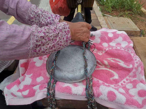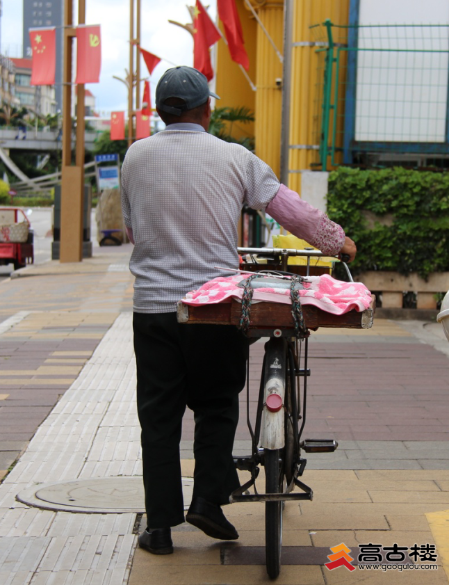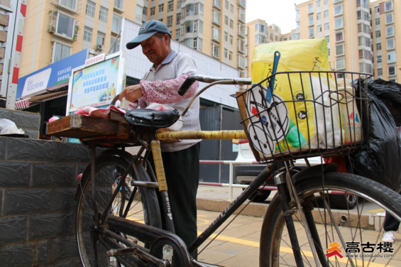 这样富有节奏感的敲击声,小时候总是隔三差五就会出现在玉溪的大街小巷,那是70、80后,甚至是一些90后打小就听得明白的“暗号”,每当这个声音响起,街头巷尾的小孩就知道“叮叮糖”来啦! 但随着时间的流逝,如今的它,渐渐的消失在我们的视野,想再次体验儿时的味道时,会发现很难再找到心里念念不忘的那一口原汁原味的惦念~ 熊师傅今年已经64岁了,18岁就开始在玉溪走街串巷卖叮叮糖,至今已经40余年!上午10点,熊师傅骑着年代久远的自行车穿行在玉溪的大街小巷里,每走一段路就会停下脚步,用手中的小钉锤敲击糖刀,发出叮叮—铛~叮叮—铛~”的声音,清脆而悠扬!