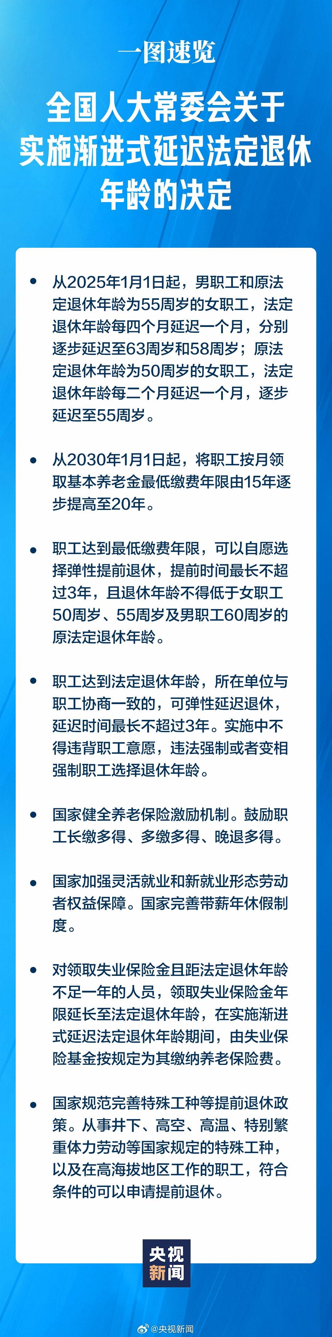 用15年时间,原法定退休年龄60周岁的男职工和原法定退休年龄为55周岁的女职工,法定退休年龄每4个月延迟1个月,分别逐步延迟至63周岁和58周岁。原法定退休年龄为50周岁的女职工,法定退休年龄每2个月延迟1个月,逐步延迟至55周岁。