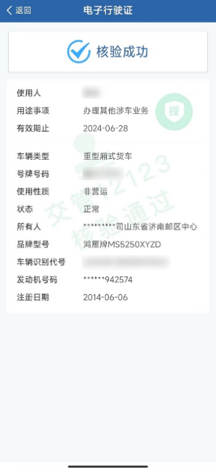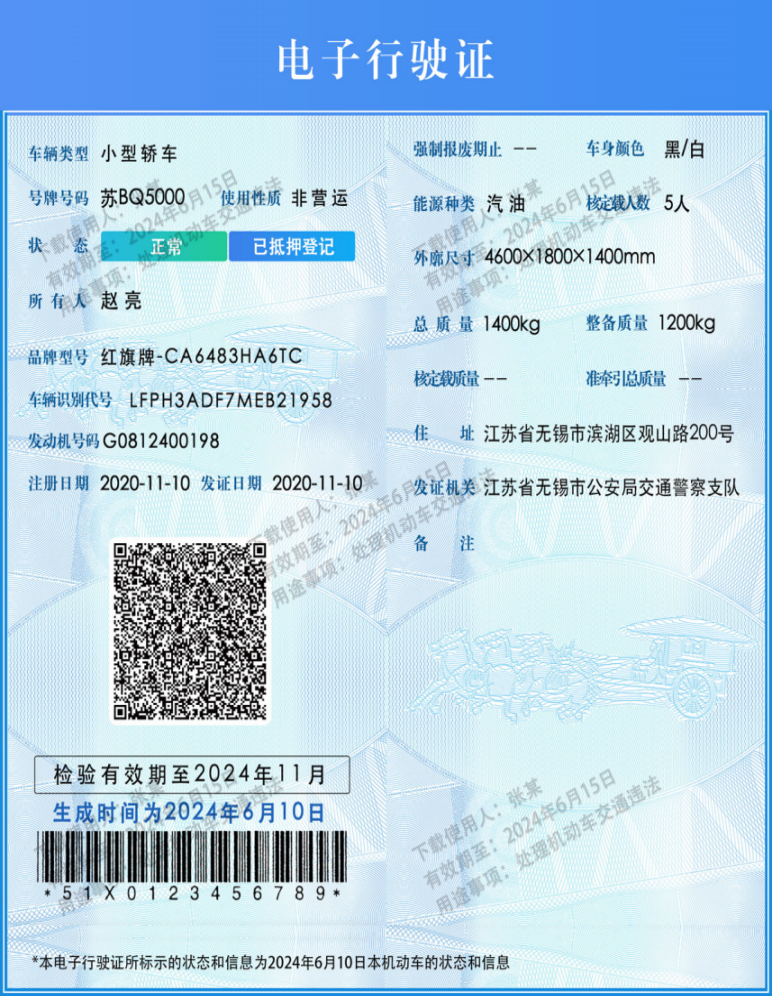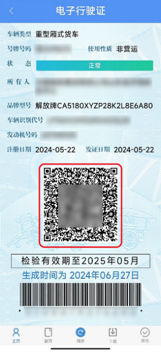 •增加了内嵌行驶证基本信息、机动车状态信息以及数字签名的动态二维码,支持扫码核验。