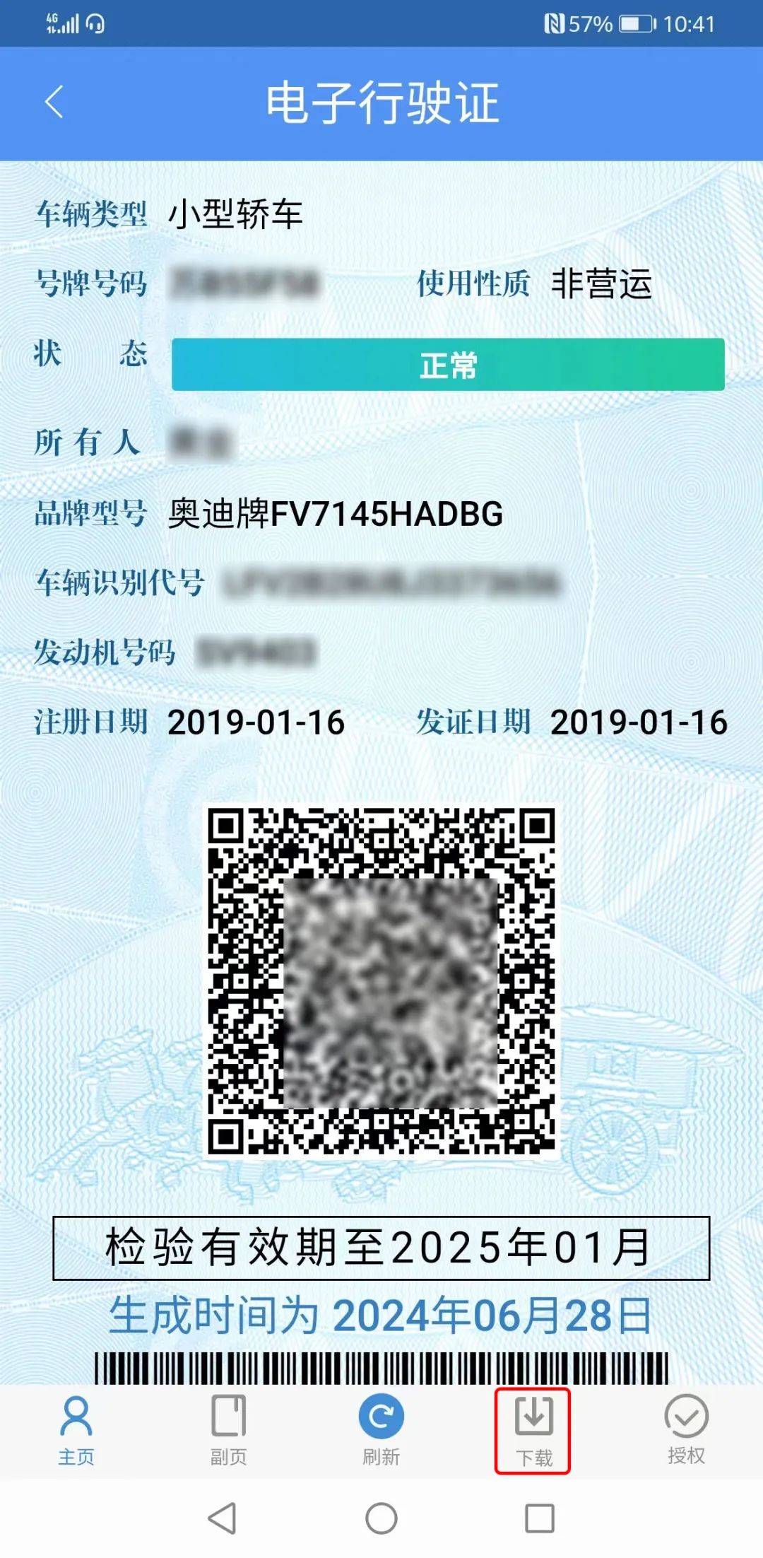 网上在线办理业务需要提交行驶证的,用户可选择下载电子行驶证图片。具体操作为:点击电子行驶证下方【下载】按钮,本人直接出示的填写用途事项和有效期后下载,授权出示的直接下载。下载的电子行驶证加注使用人、用途事项和有效期限水印,有效期最长为7个工作日。![]()