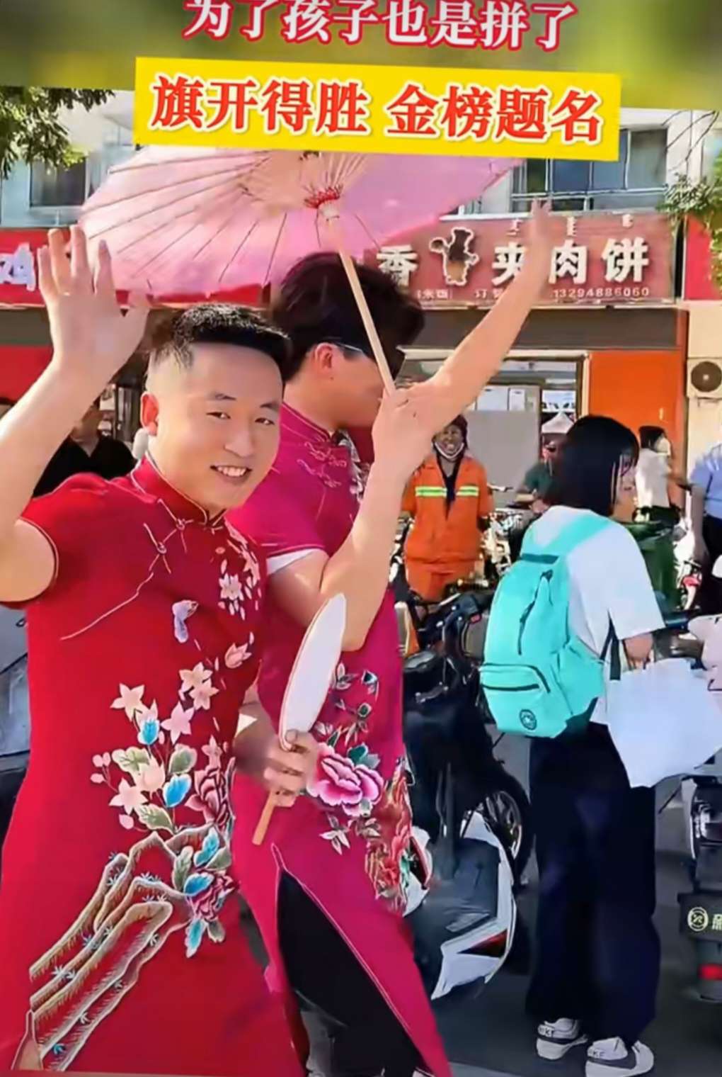 谁说只有妈妈好,你看爷们穿旗袍。一年一度高考季,考生老爸领风骚。