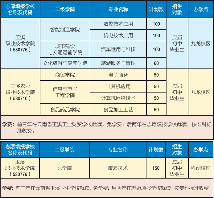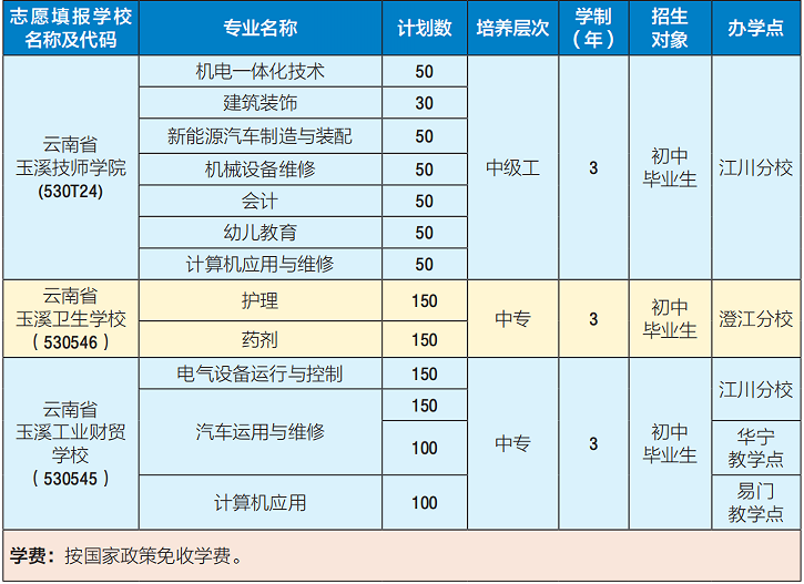 1.玉溪职业技术学院职教集团江川分校(咨询电话:王老师18187735716)