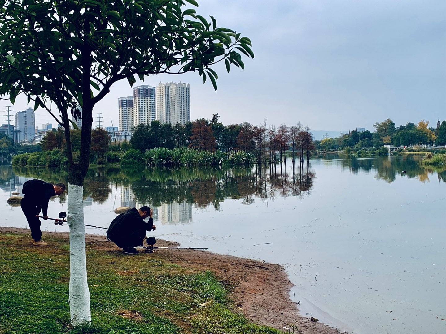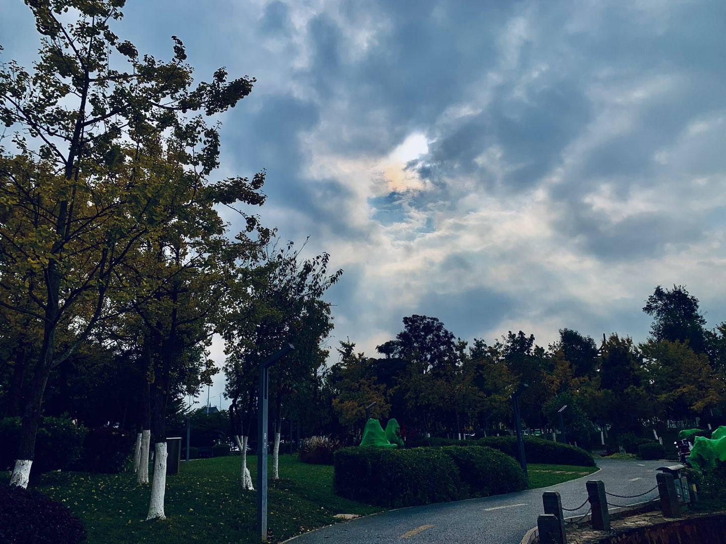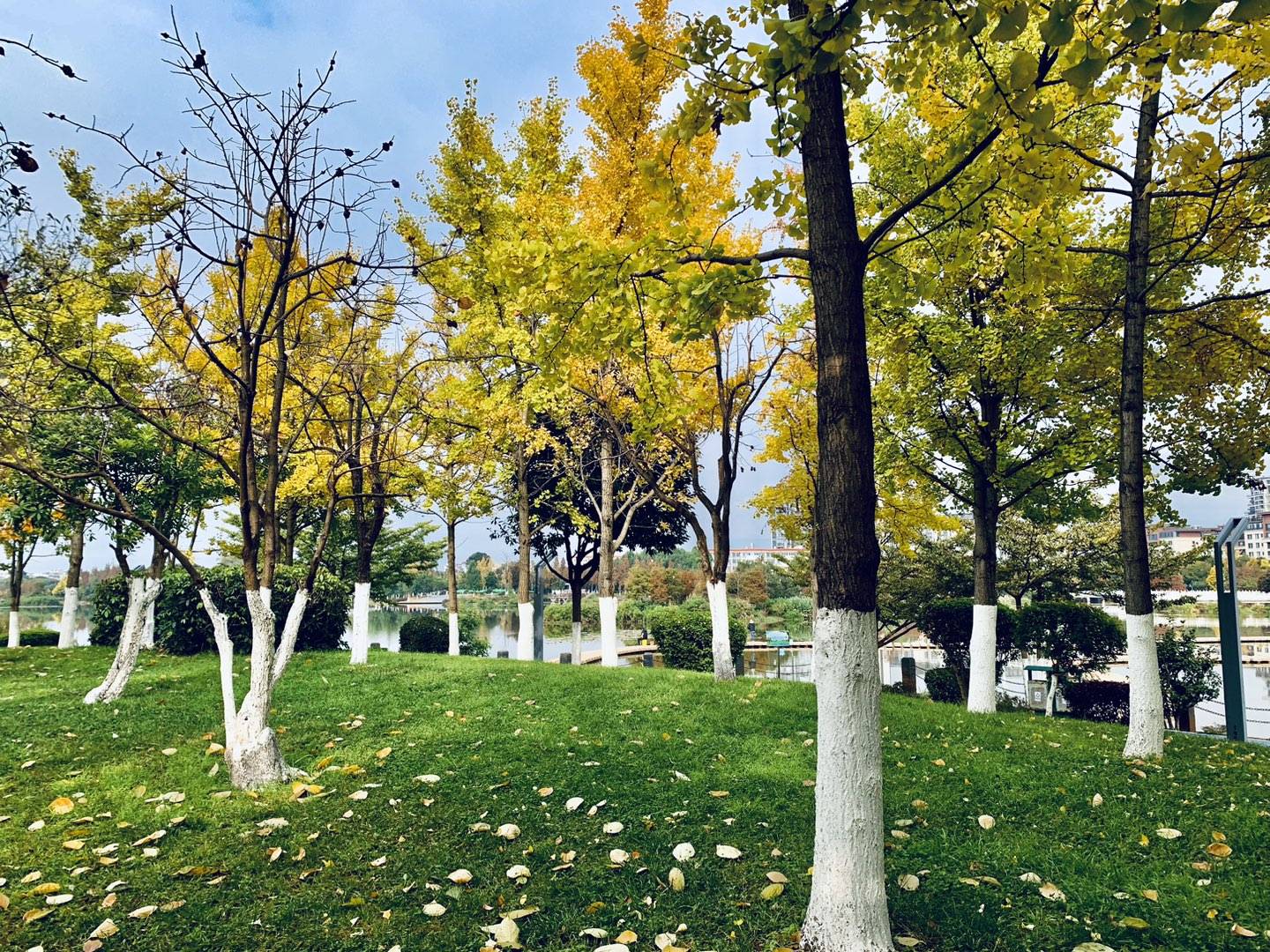 在州大河旁边跑步,看到有人从草坪里往外搬木头。木头