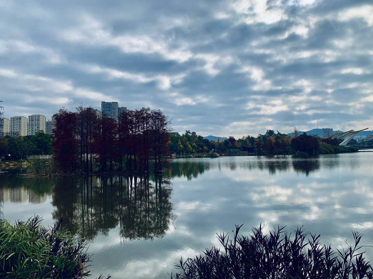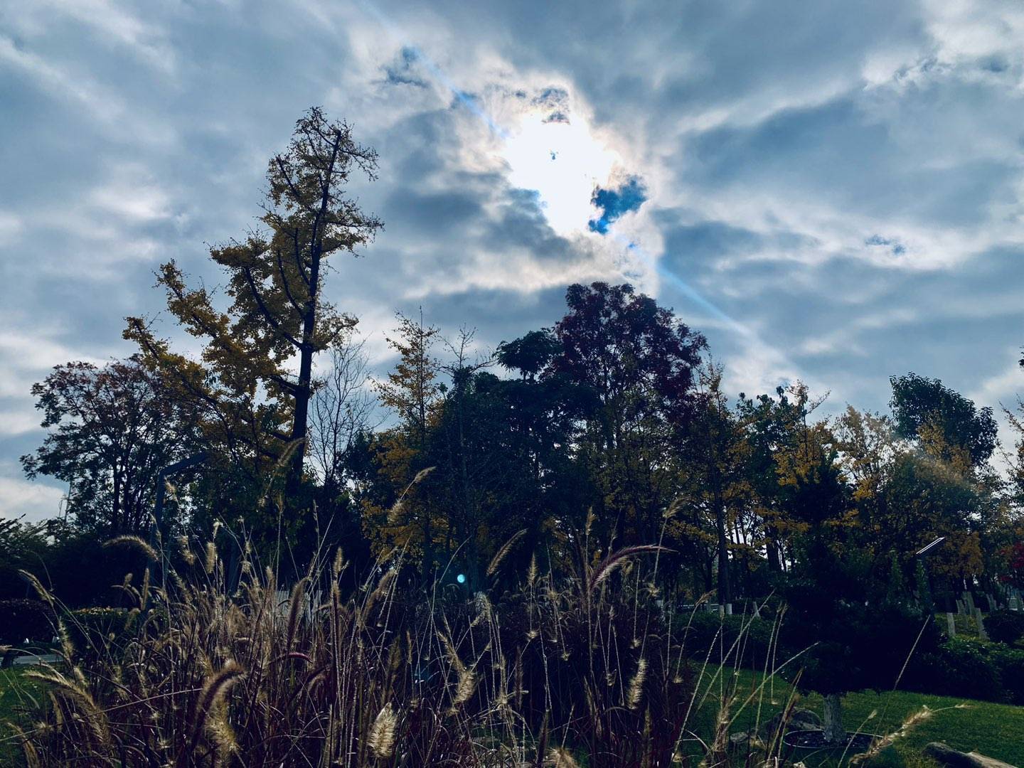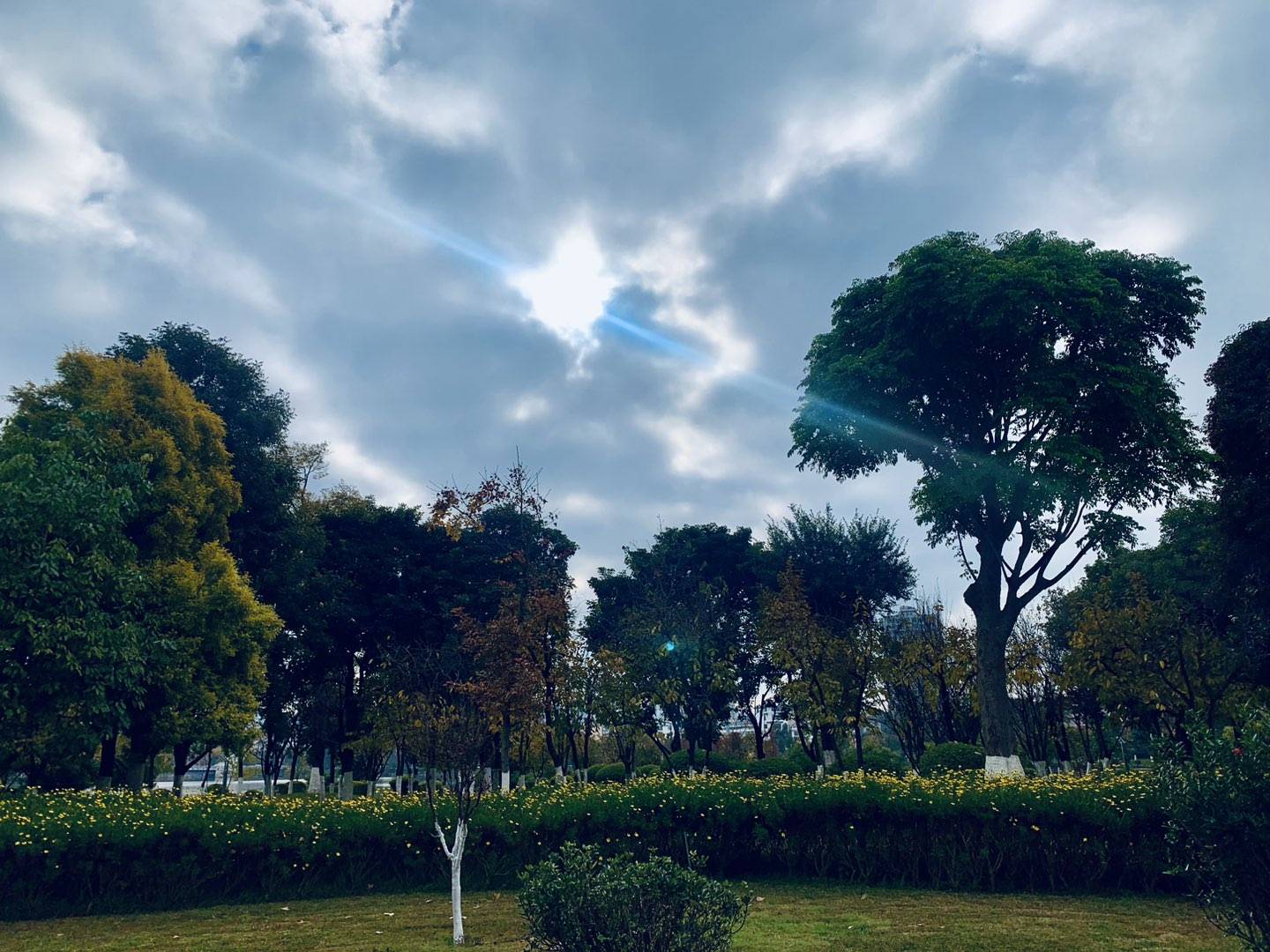 初冬的清晨,微风和熙,阳光温暖。当一抹阳光穿透云层,一切都明媚起来。这是大自然的馈赠。