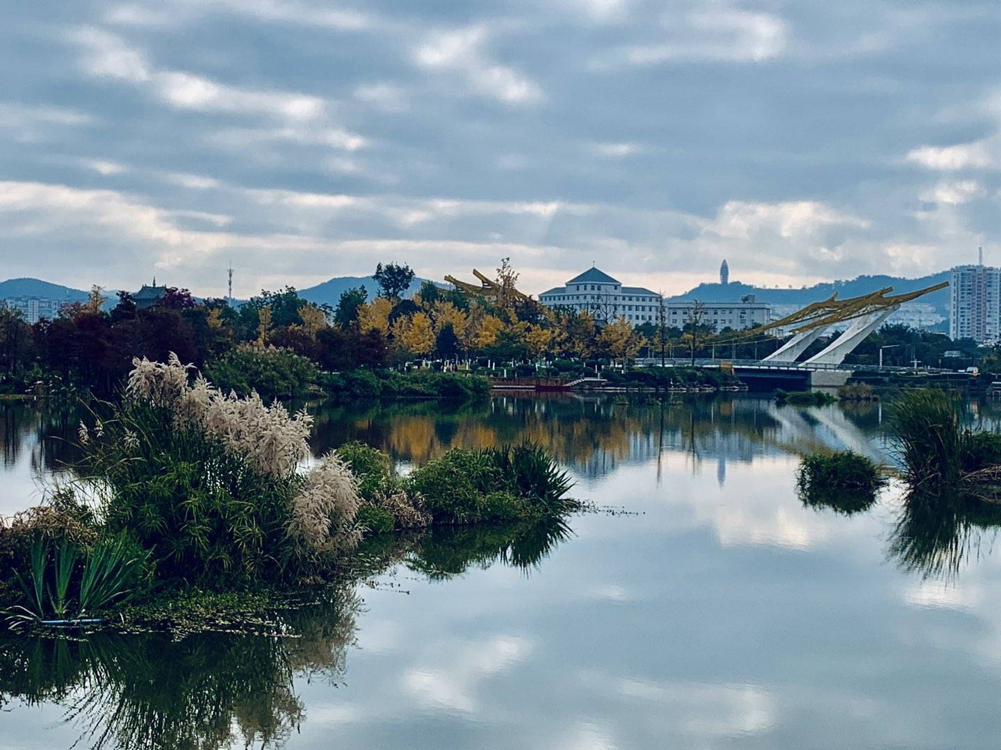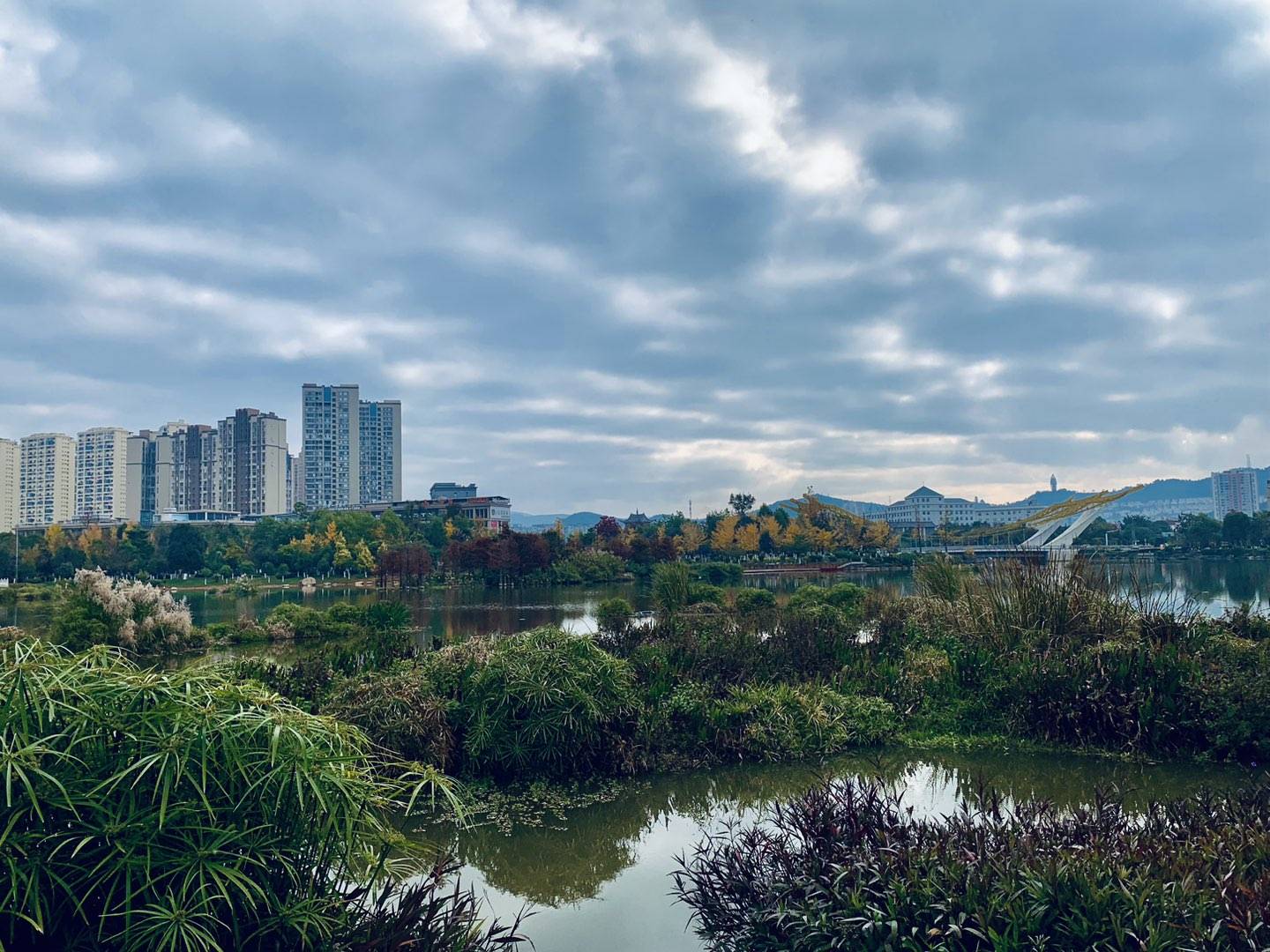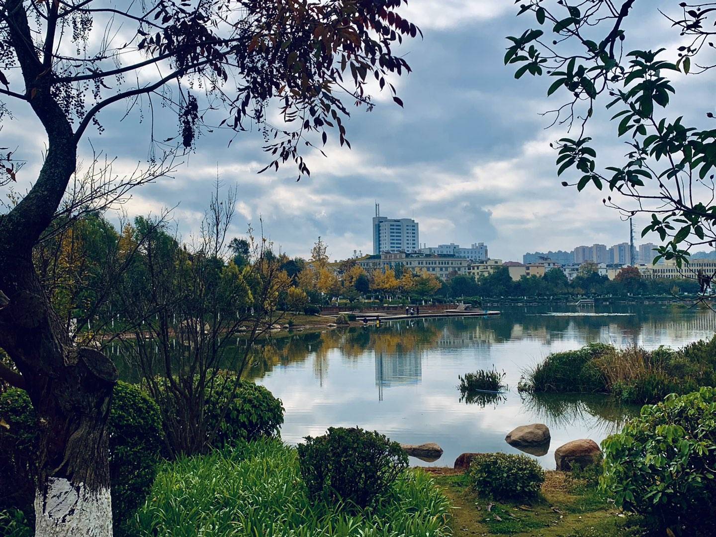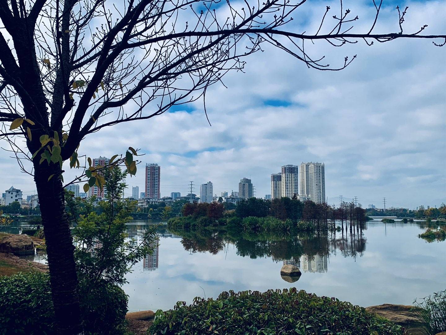 初冬的清晨,微风和熙,阳光温暖。当一抹阳光穿透云层,一切都明媚起来。这是大自然的馈赠。