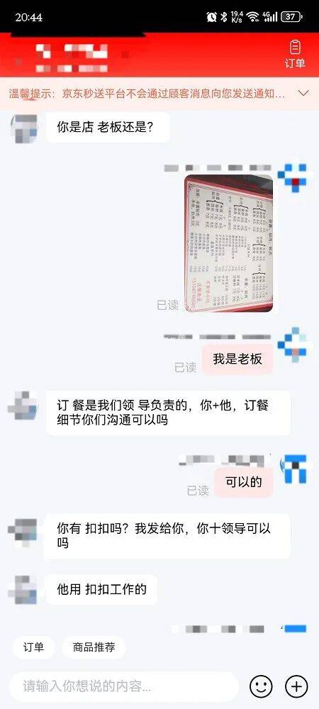 当事人在京东平台经营外卖,有顾客下单后将其引导至QQ沟通。对方冒充玉溪某中学主任洽谈采购事宜,随后以需额外购买“佛跳墙”为由,让当事人帮忙垫付购买,并推送了“佛跳墙”商家联系方式。当事人与商家对接后完成购买,被对方拉黑,最终被骗。