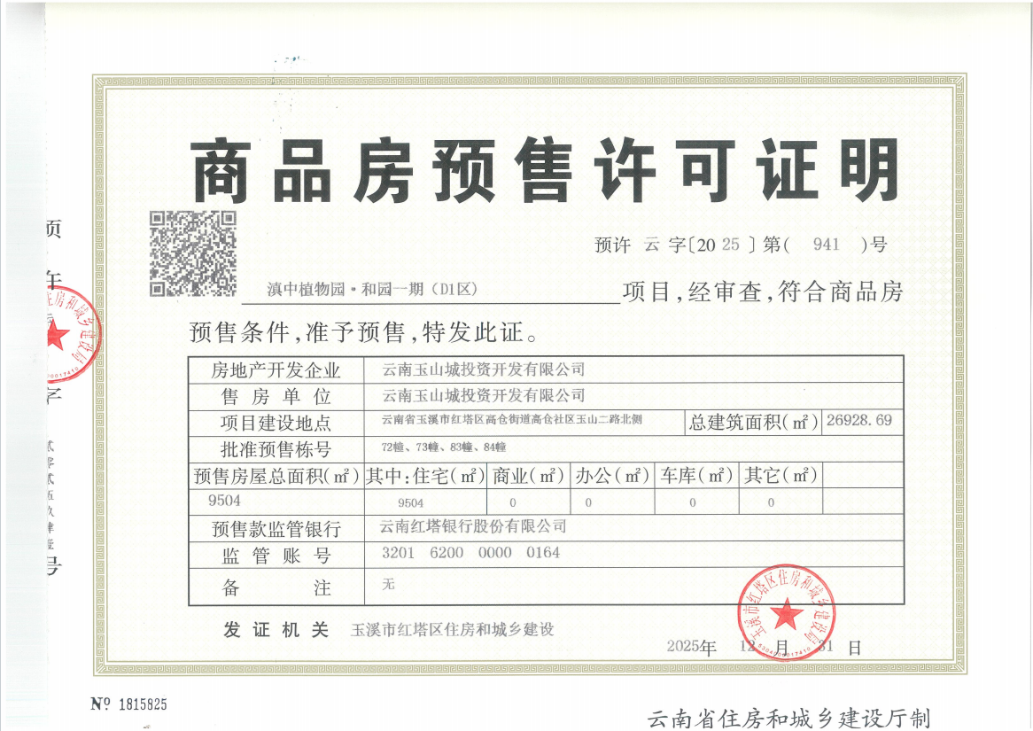 [今日红塔] 官宣!滇中植物园和园D区喜获预售许可证明,4900元/㎡起售!
