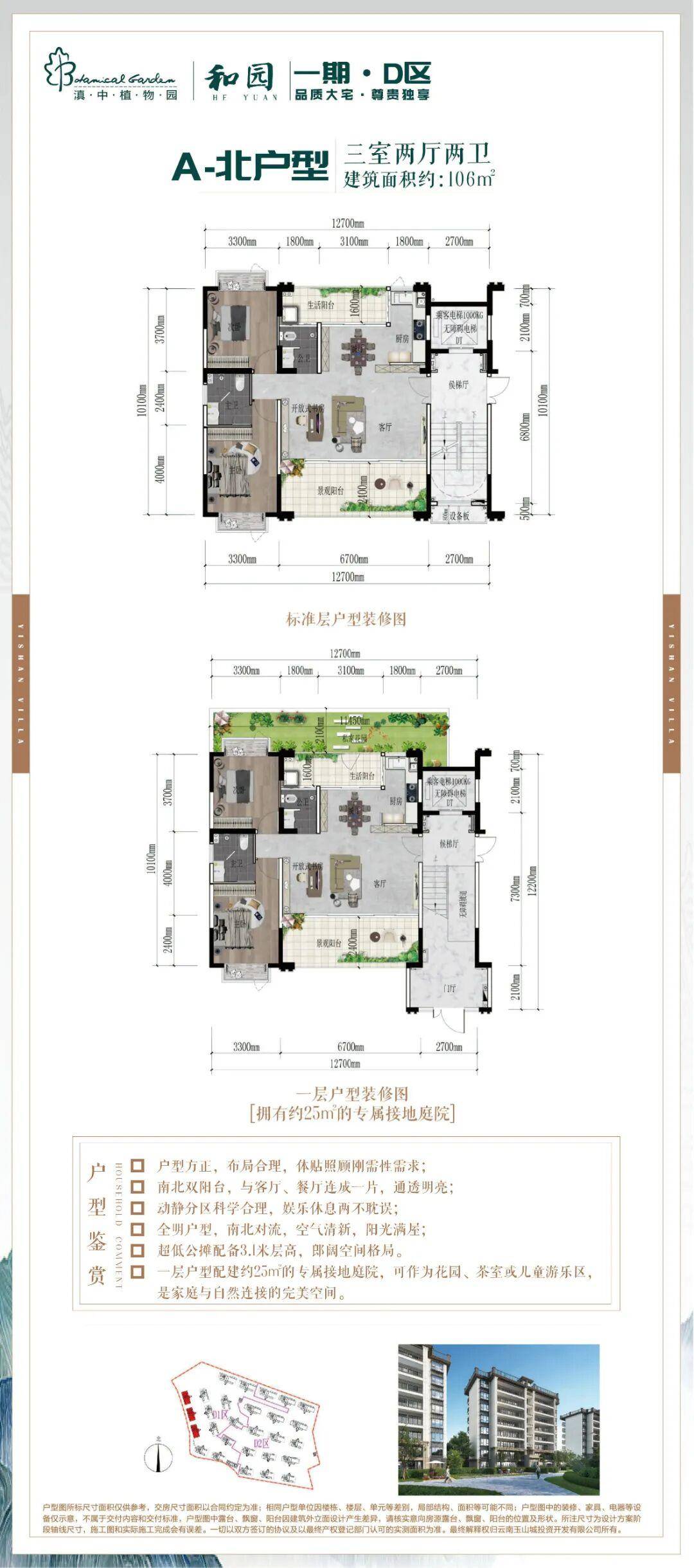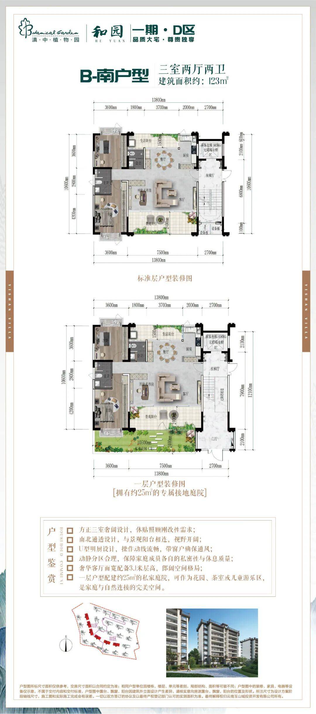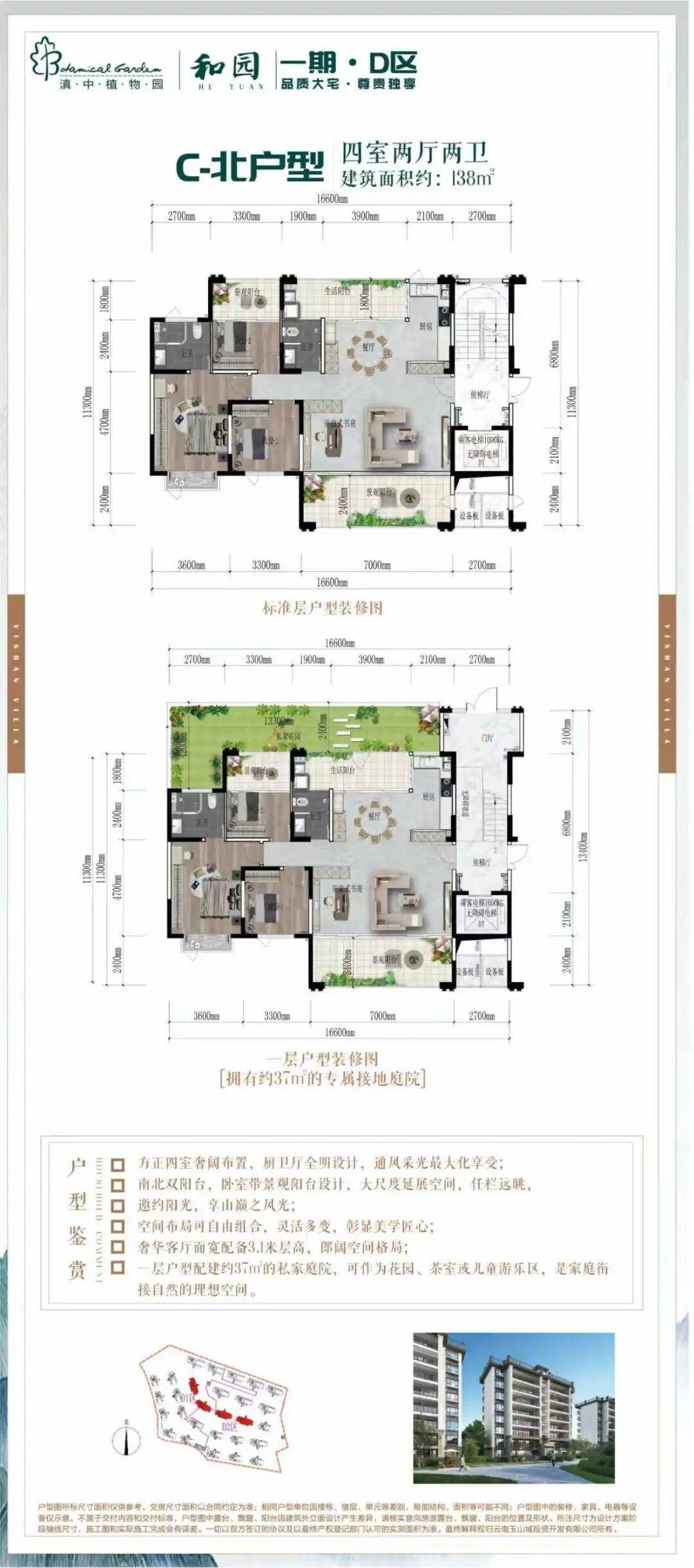 滇中植物园·和园D区洋房坐落于C区旁,D区洋房占地约58.54亩,总建面约59340.37平方米28幢独单元、446套纯8层板式花园洋房,匠心筑造高品质山居生活样板。