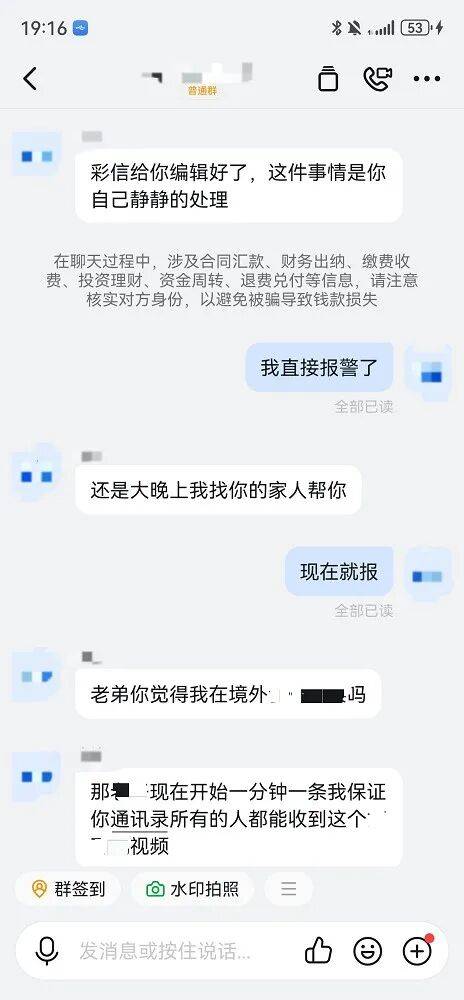 第四步隐私威胁,施压索财:以隐私截图、视频曝光相威胁,迫使受害人同意转账。