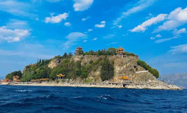那耙被丢弃的泥土,便在抚仙湖中化作了今日的孤山。
