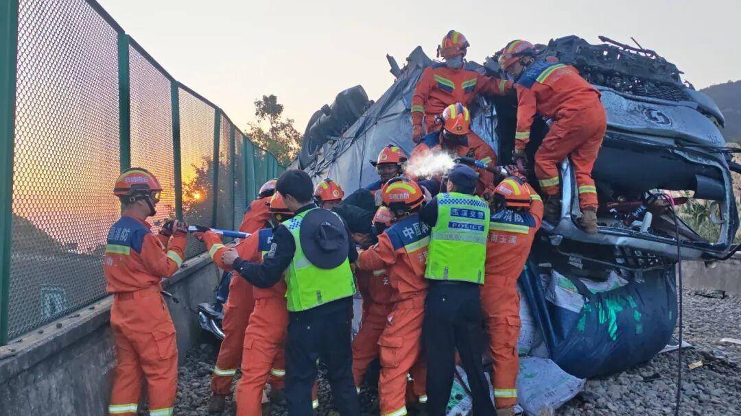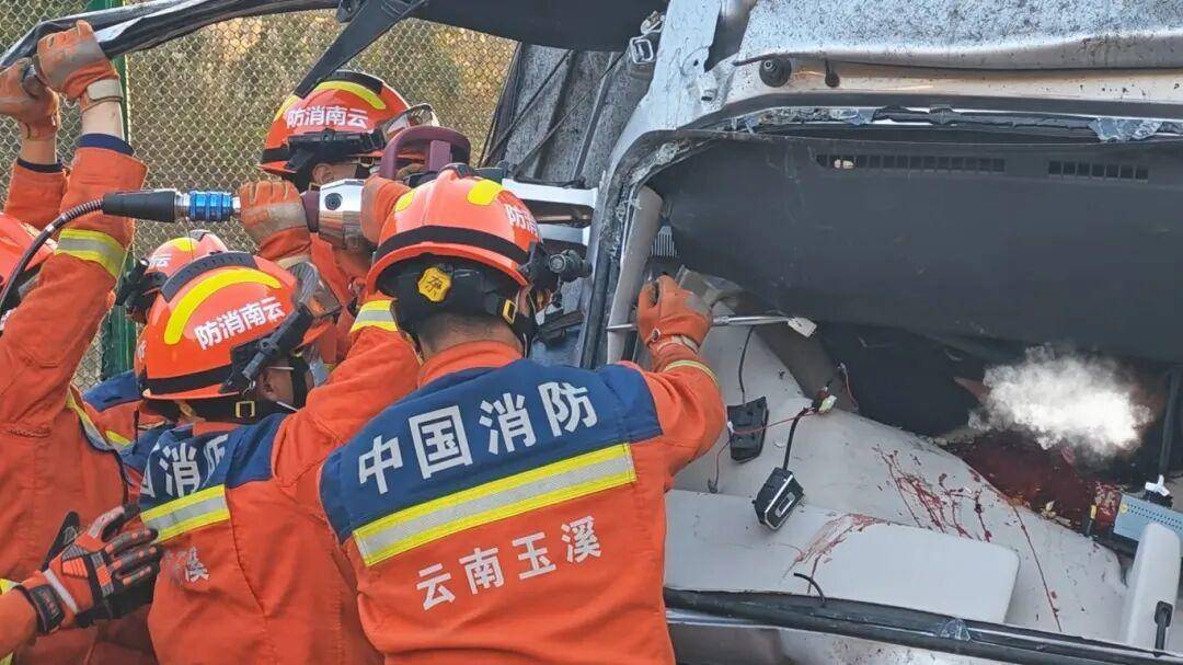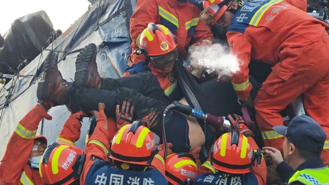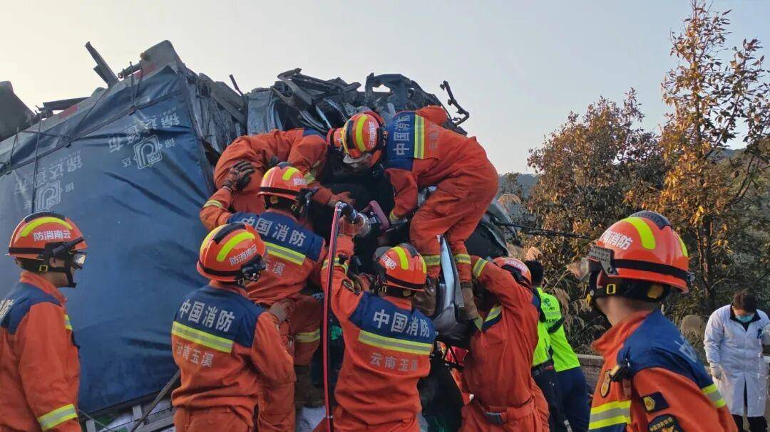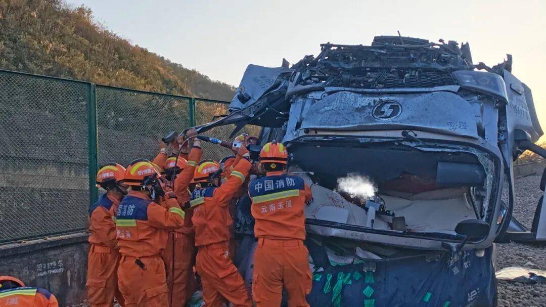 [今日峨山] 大货车侧翻司机被困,峨山消防紧急救援!