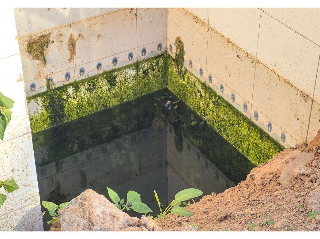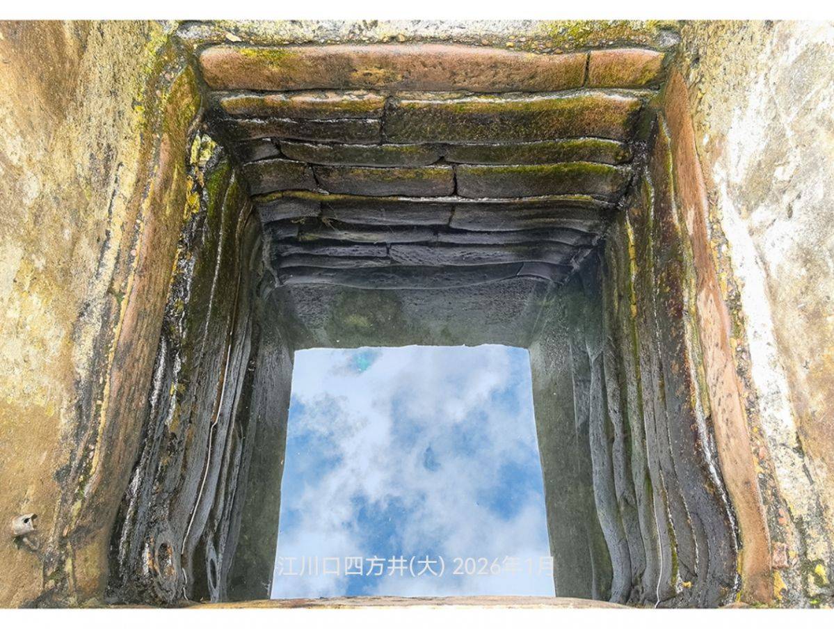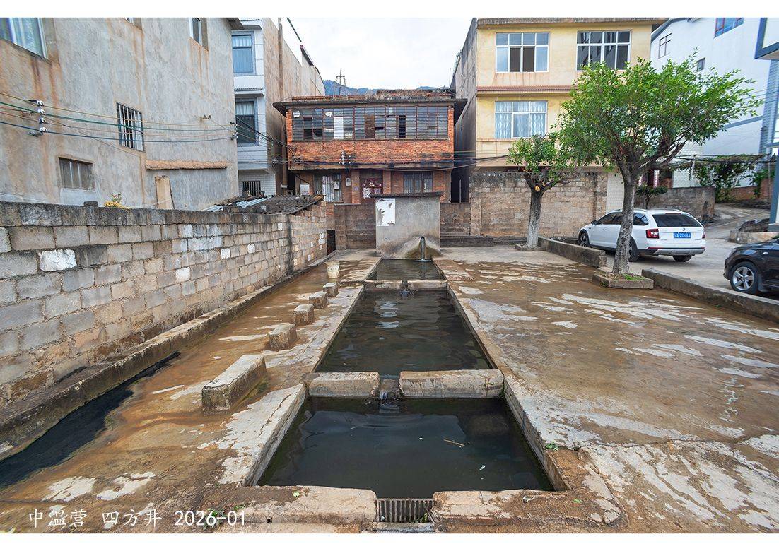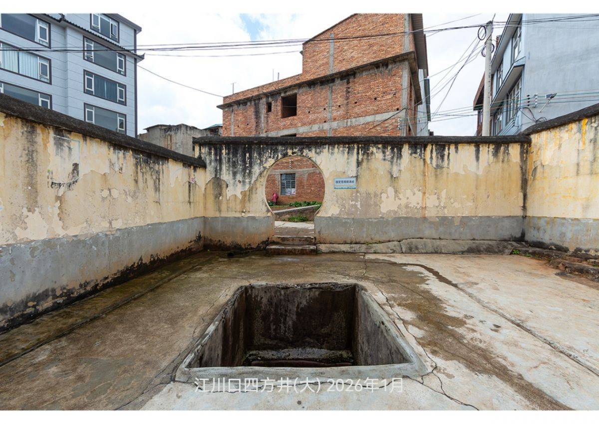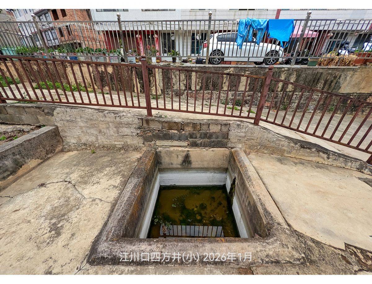 江川口四方井:该四方井较为特殊,实为两联,只是两井不像通常紧密相连,而是通过出水井中的溢水管道跨过民房流到第二井。出水井井壁除下部有年代感的大块条石外,上部是混凝土,与上岁数的村民了解,知原井深至条石,上部是在第一次村舍改造时期整体垫高的。条石中的溢流孔是原有。![]()
