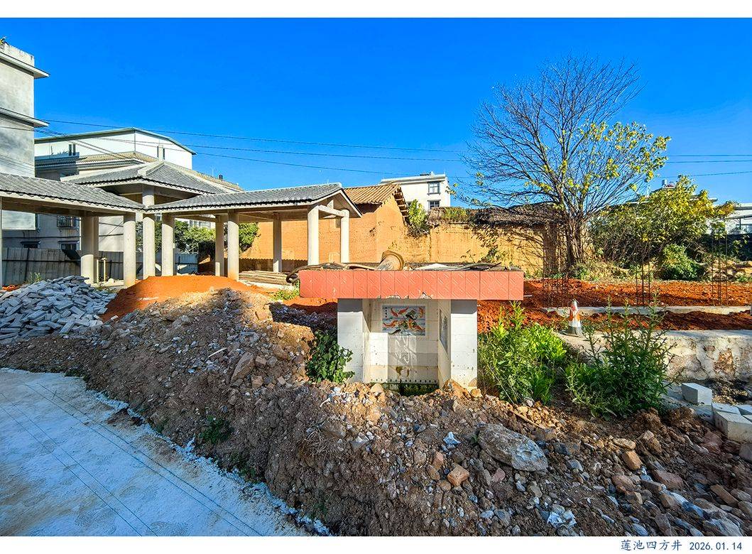 莲池四方井:施工工地之中,水量小,近乎荒废。加建有亭阁,说明曾经的重要。![]()
