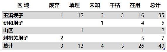 说完刺东关的泉井,本篇转入玉溪坝子的主坝区。玉溪的泉井远不止地方志所载的36处。在尚未完成全部村庄探访的情况下,已记录到49处;其中主坝区即占35处,主要沿坝子南、东、西三面山脚分布,尤以南侧与东侧为密集。被填埋或消失的泉井,也多集中于这一区域。下表为目前已知泉井的统计情况,“未知”项指尚未实地核实存续状态者;“山区”项特指大石板井与林秀两地,前者口径达15米,占地近500平方米,呈鹦鹉螺状盘旋而下,丰水期可自溢,旱季则可能干涸,其规模在全球亦属罕见。![]()