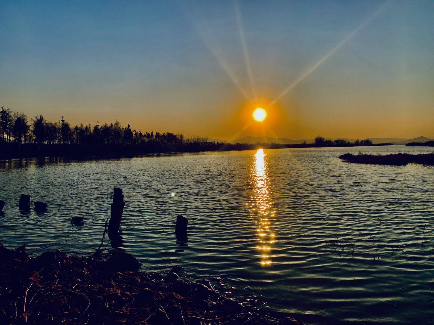 湖光,蓝天和小柴