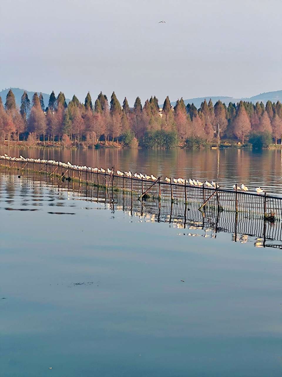 湖边转一圈,7点56,出流改道入水口,拍个日出,折