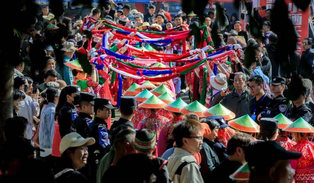 满城尽是花腰傣,非遗盛装巡街,银饰叮当、彩裙飞扬,送福迎春,祈愿五谷丰登、风调雨顺。