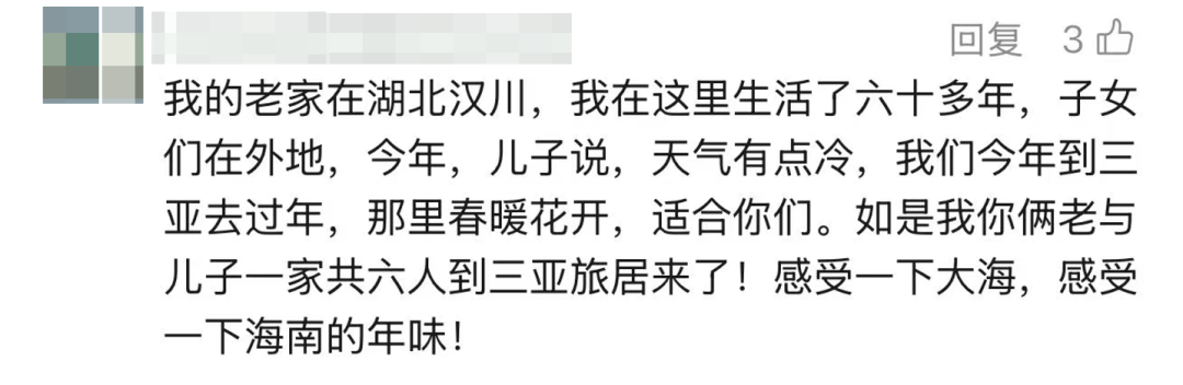 今年春节,一种新的团圆方式悄然走红——“反向过年”。越来越多的父母选择离开老家,奔赴子女所在的城市,在异乡共度佳节。 孩子们在三亚沙滩上玩耍。 旅行平台数据显示,春节期间,60岁以上旅客的机票预订量同比增长超过35%,目的地主要集中在一线及新一线城市。反向出行的火车票预订量也出现显著增长。 “反向团圆”热潮背后,既有传统观念的转变,更有实实在在的考量。 一是“性价比”更高。春运期间,从大城市返乡的机票往往价格走高,而反向出行的票价一般更加实惠。记者2月14日在旅游平台查询,假期首日,北京飞往兰州的单程票价普遍在700元至上千元,而从兰州飞往北京最低仅需两三百元。不少长辈还实现了人生“首飞”。数据显示,这个春节假期,60岁以上乘客预订“人生第一张机票”的数量同比增长22%。 二是服务更有“温度”。民航系统提供“首乘服务”和“无人陪伴乘机”服务,部分机场还针对单独出行、只会讲方言的中老年旅客提供“乡音伴行”等个性化沟通陪伴。与此同时,自1月20日起,60周岁及以上老年旅客可拨打12306客服电话,通过人工客服完成选票、订票及支付全流程服务。 三是“年味儿”不减。各地文旅纷纷“上新”,为“反向团圆”的家庭提供更多过节选择。在北京,特色年货市集摆进商场、超市;在上海,超2000项文旅活动涵盖演出、非遗、展览等七大板块;义乌设置“我与春晚同框”打卡点,推出“舌尖联合国”等8条特色主题路线供游客挑选。 团圆的方向变了,双向奔赴的温情从未改变。“反向过年”,在悄然改变春运格局的同时,也让家人们在多元文化消费场景中体验别样的中国年。 网友评论 “一家人整整齐齐, 就是团圆、就是过年!”
