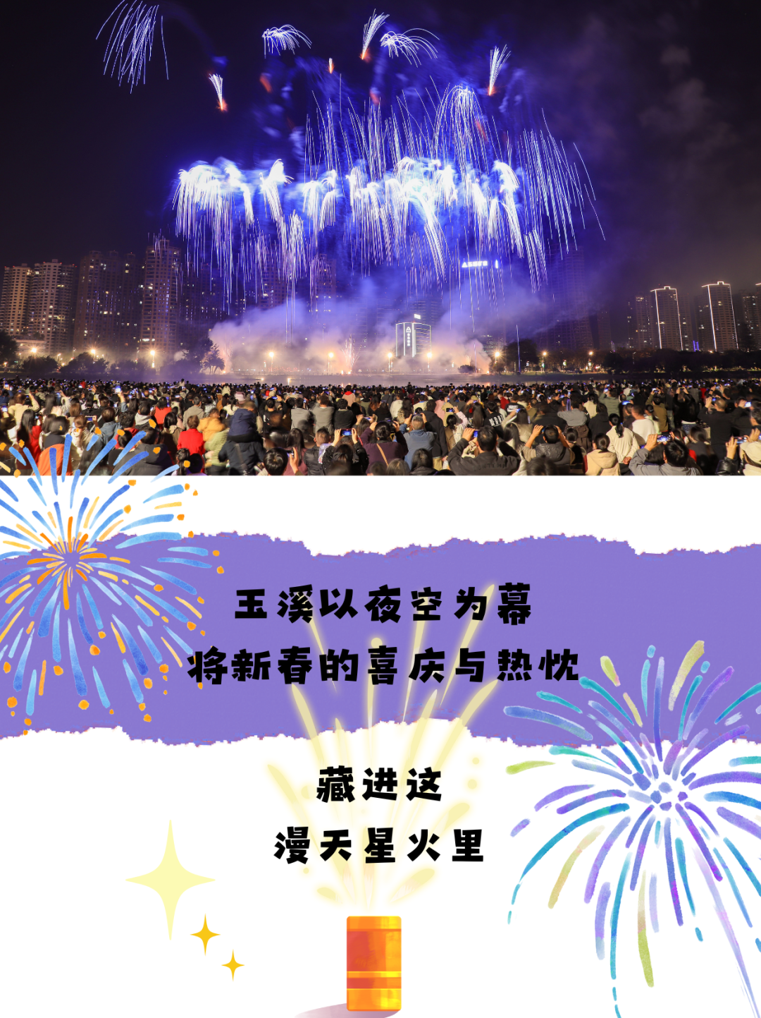 烟火易逝 美好永存 愿这漫天烟花 为你带去一整年的好运与欢喜 愿玉溪的山清水秀 伴你岁岁安康、万事顺意