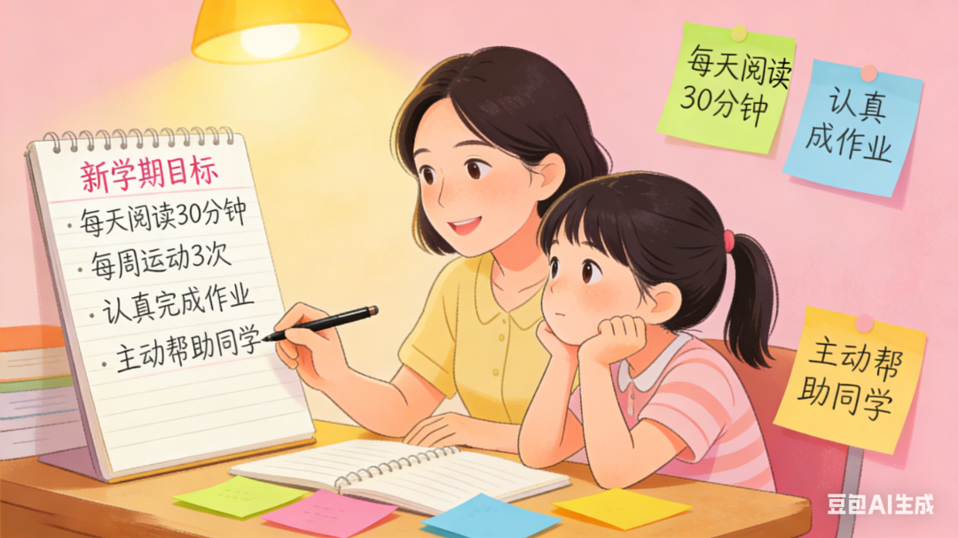 针对孩子的不同特点,制定新学期目标,把新学期努力的方向一起具象化,增加孩子的学习动力。
