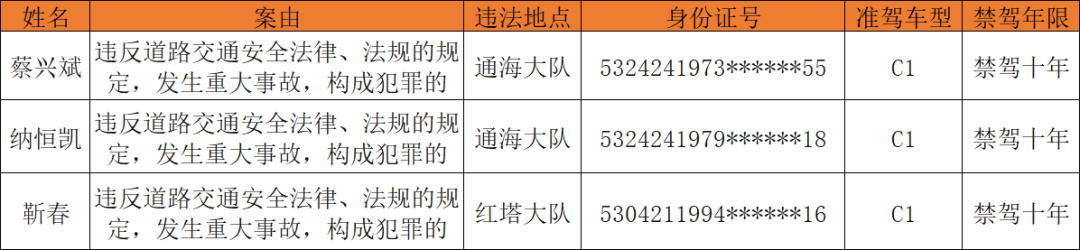 [今日红塔] 蔡某某、纳某某、靳某,禁驾十年!