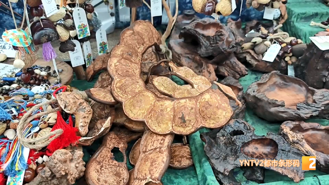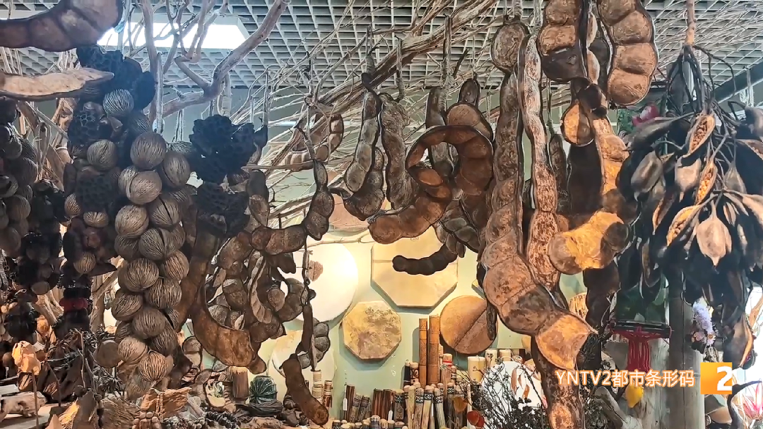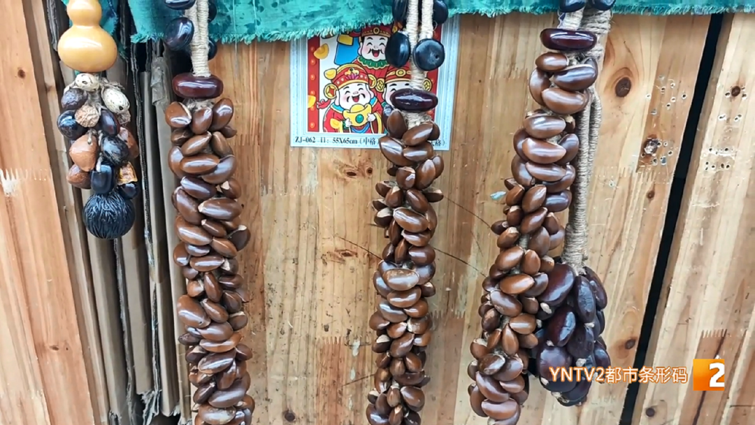 店主说,除了榼藤豆荚,他们店里也出售各式各样的种子工艺品,缅茄菩提手串、火焰果挂坠、小木鱼手串等等,这些样貌独特的纯天然绿色手工艺品,深受省内外游客的喜爱,成为了颇具云南特色的新型伴手礼。