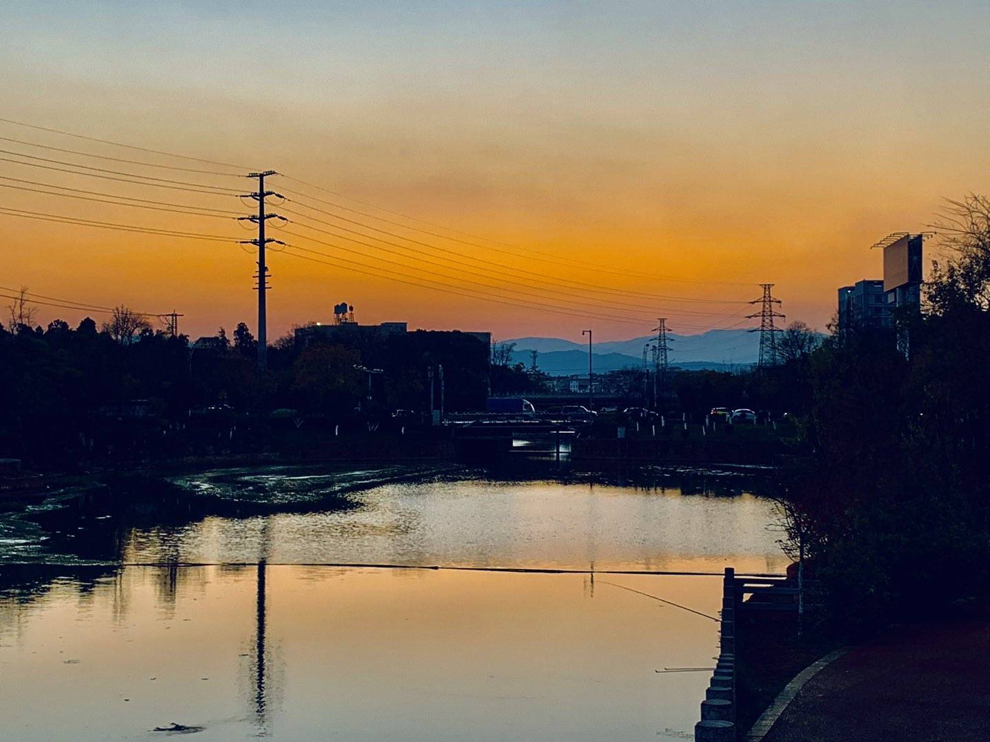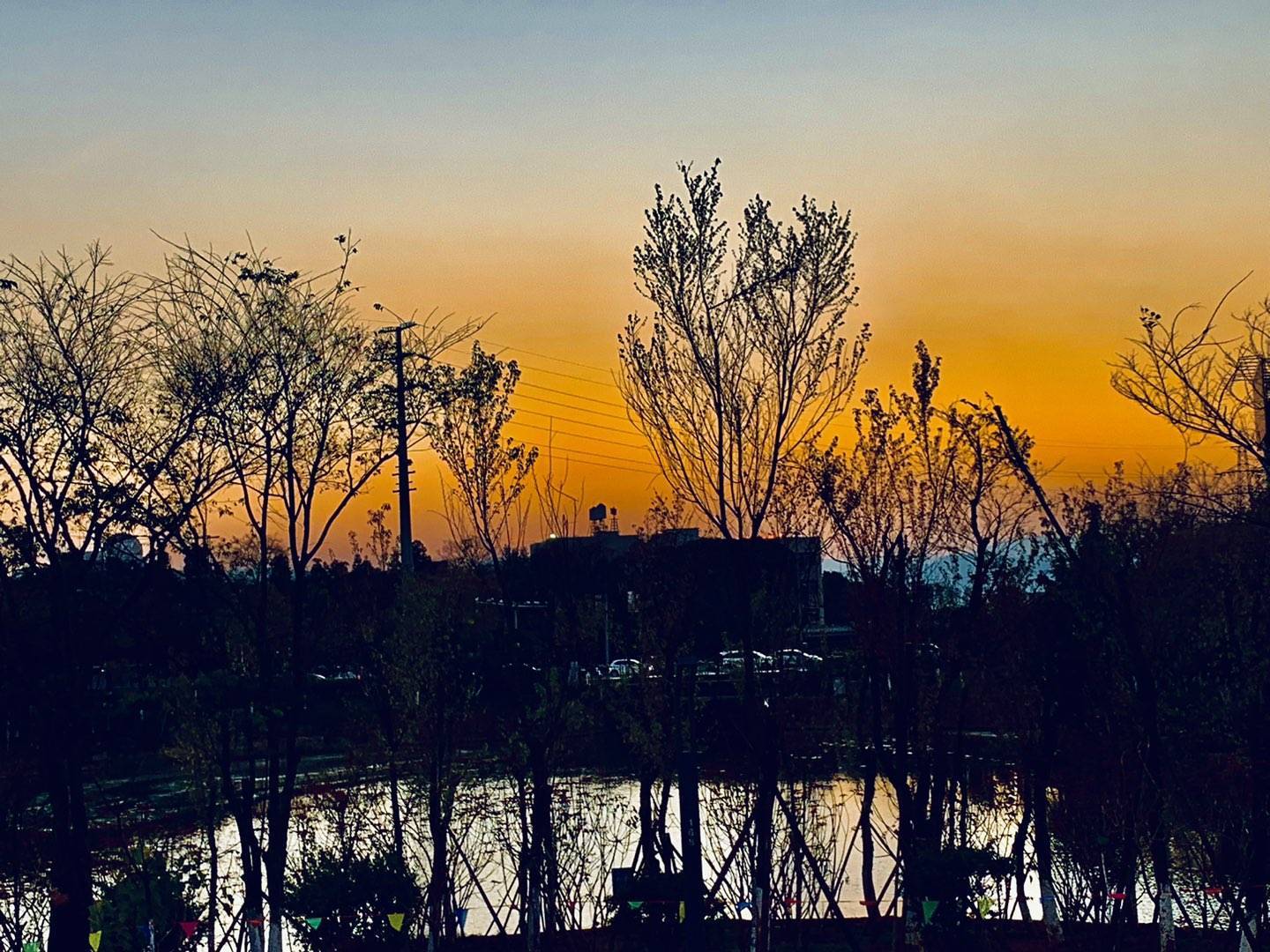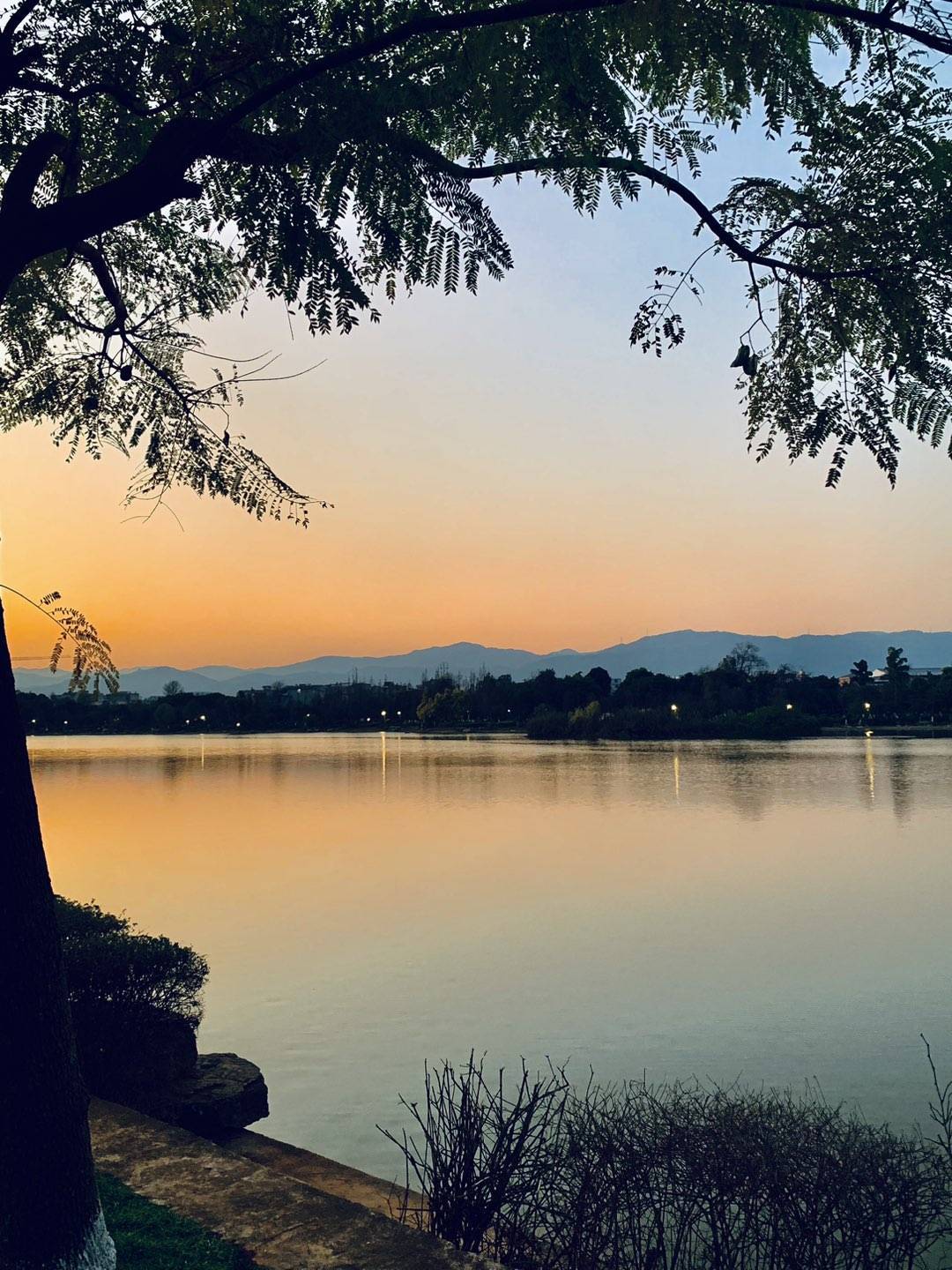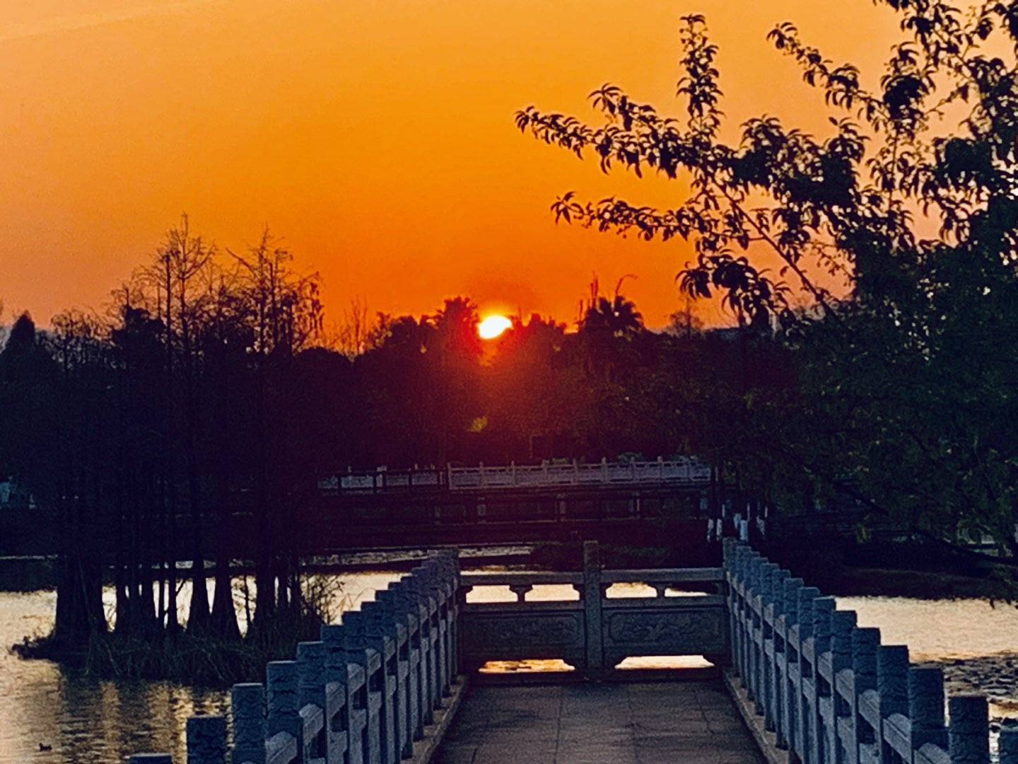 黄昏时分,夕阳的余晖把湖面映照得金光闪闪,绚丽多彩!