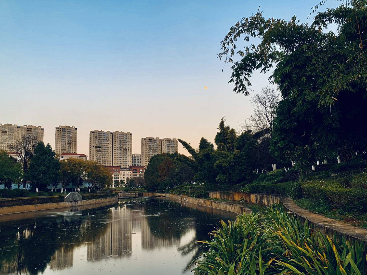 黄昏时分,夕阳的余晖把湖面映照得金光闪闪,绚丽多彩,宛如一幅天然的画卷。