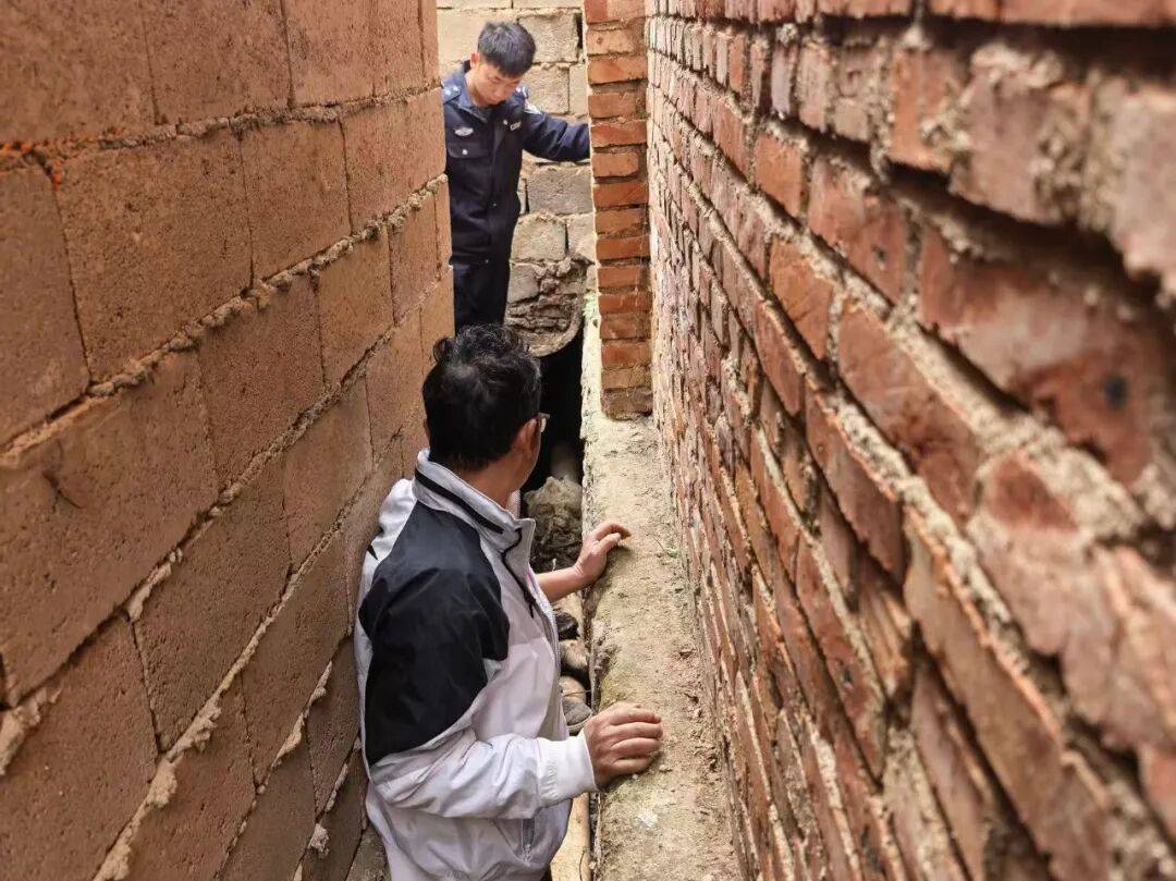 在大家的共同努力下,3月14日16时许,终于在海口社区三组某农户牛棚旁的阴沟里发现了老人。此时老人俯身蜷缩在沟里,动弹不得,无法自行脱身,发出轻微的呼救声。民辅警脱下警服,立即开展营救,耐心安抚情绪,快速检查身体情况。大家立即找来保暖的衣物,递上热水和食物,并用担架将老人送上救护车。