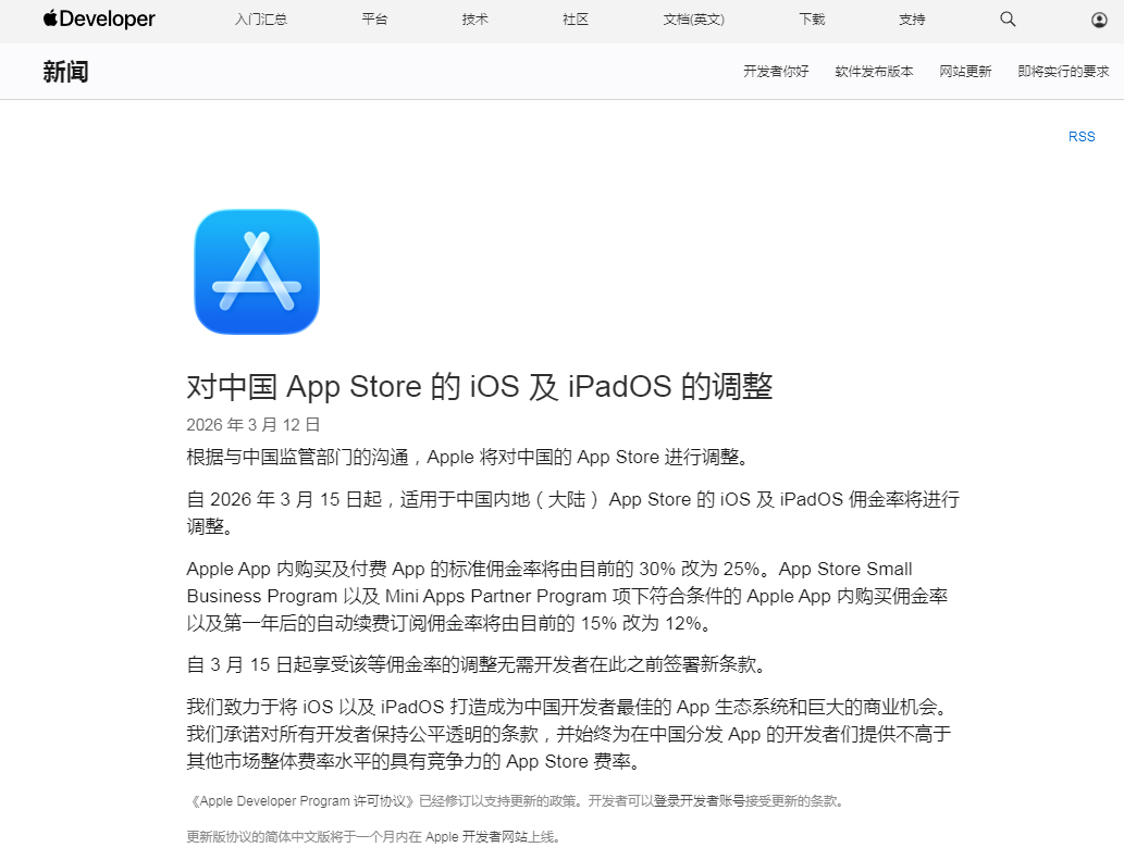 自3月15日起,享受该等佣金率的调整,无需开发者在此之前签署新条款。