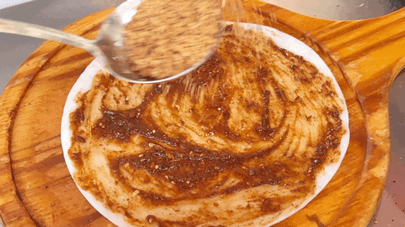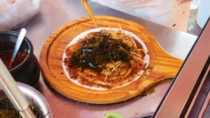 刷上一层老板的秘制酱料,甜酱的温润、咸酱的鲜辣在温热的饵块上化开,瞬间勾住鼻尖,连路过的人都忍不住放慢脚步。