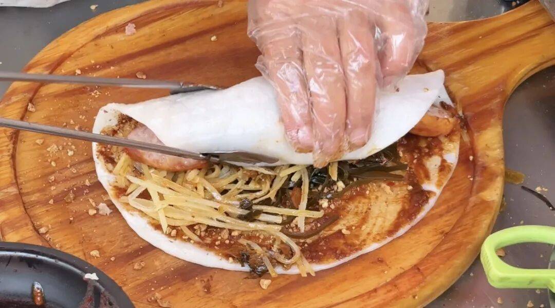 想升级成豪华版?那就塞上一根滋滋冒油的烤肠,或是金黄酥脆的油条,碳水+碳水的快乐,一口就把幸福感拉满。