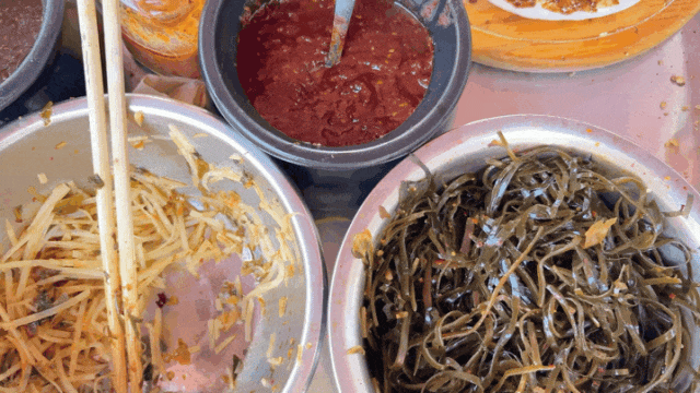 原味脆爽的洋芋丝,酸辣的腌菜洋芋丝、入味的海带丝是基础标配,每一口都带着蔬菜的鲜脆;