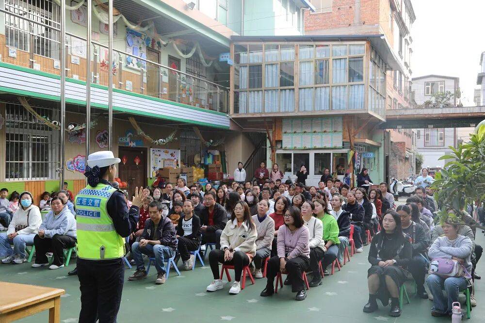 同一天,这群“荧光绿”还兵分两路,分别走进刘总旗社区幼儿园和好娃娃幼儿园的中小班家长会。只不过,幼儿园的课堂不再是孩子们唱主角,而是专门给爸爸妈妈、爷爷奶奶们“补课”。“您有没有想过,每天接送孩子时,那个随手一抱就让孩子站在电动车踏板上的习惯,其实隐藏着多大的风险?”民警的提问让不少家长陷入了沉思。