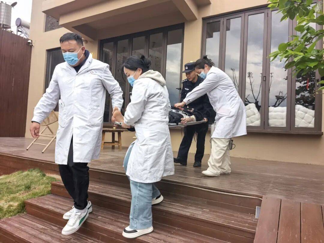 医护人员及时对卿某进行初步救治,民辅警协助将其快速平稳地转运到救护车上,紧急送往医院接受进一步诊疗。