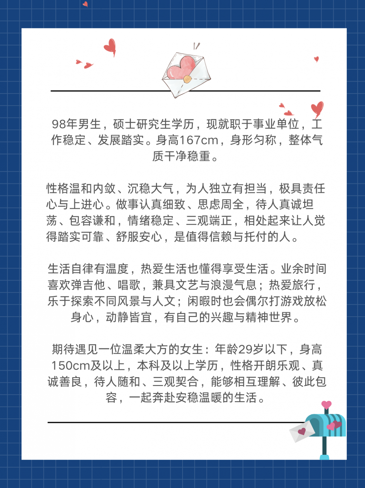 [红娘推荐] 98年|167cm|硕士研究生|事业单位|未婚/找女朋友