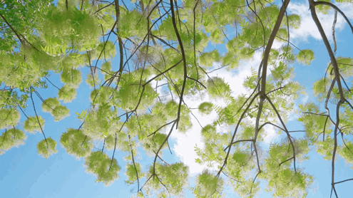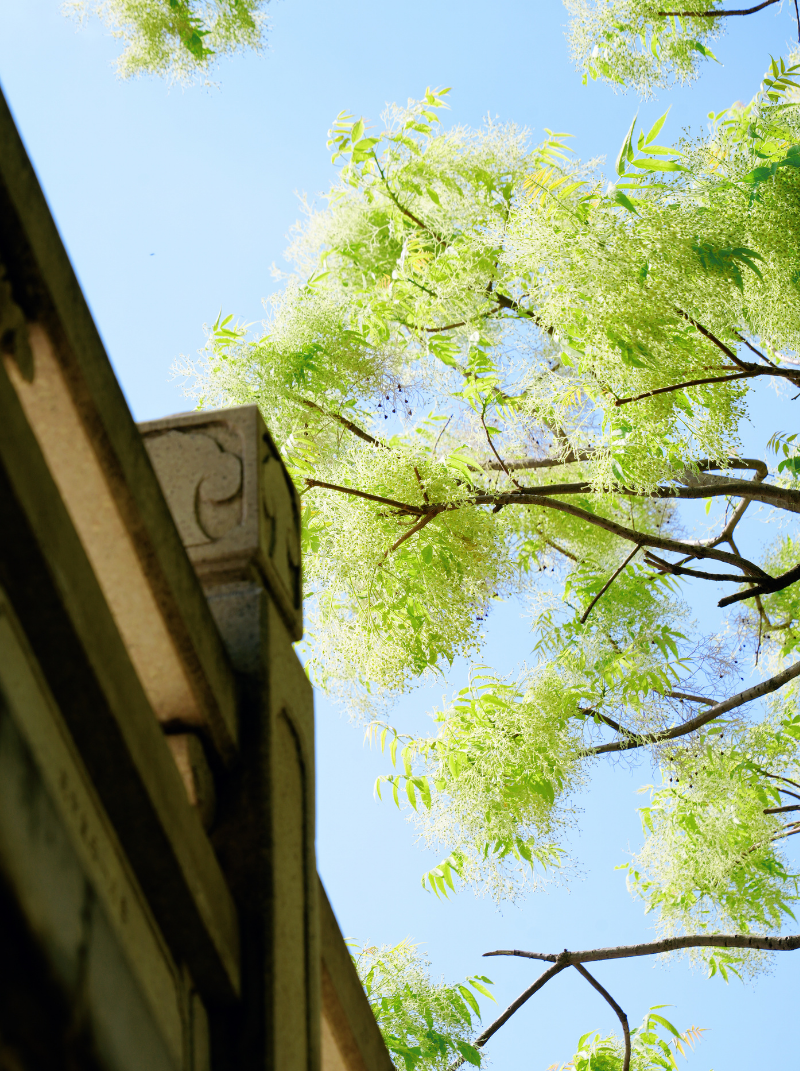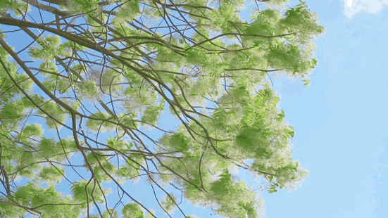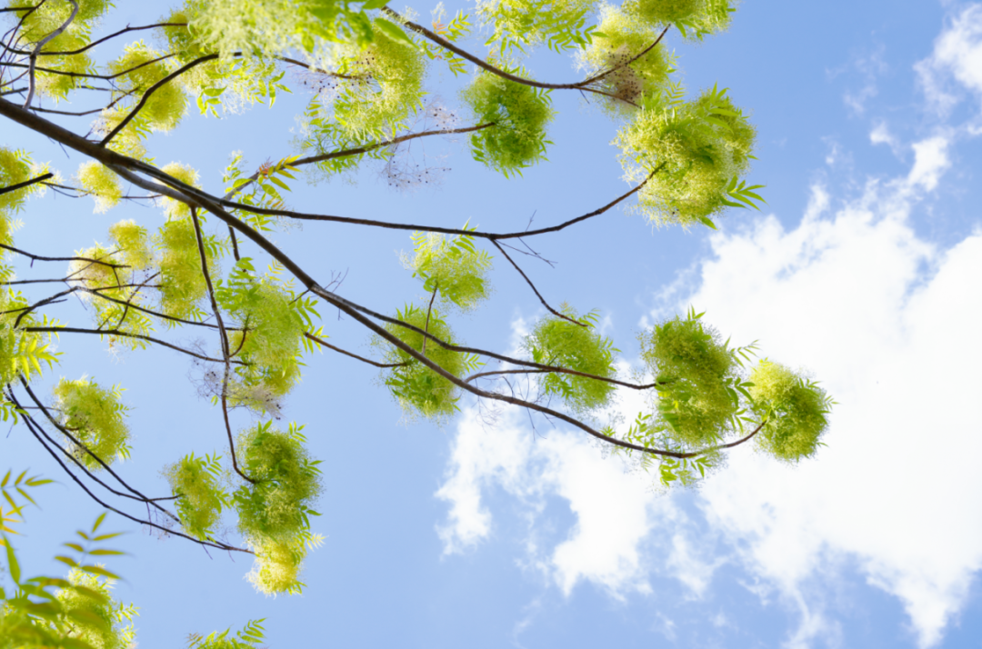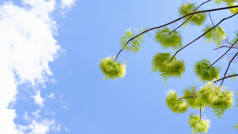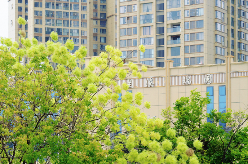 细碎的小花攒成一团团蓬松的花球,缀满整棵树的枝头,远看像一团团抹茶色的棉絮,又像落了满树的雪,在蓝天映衬下,清透又亮眼。