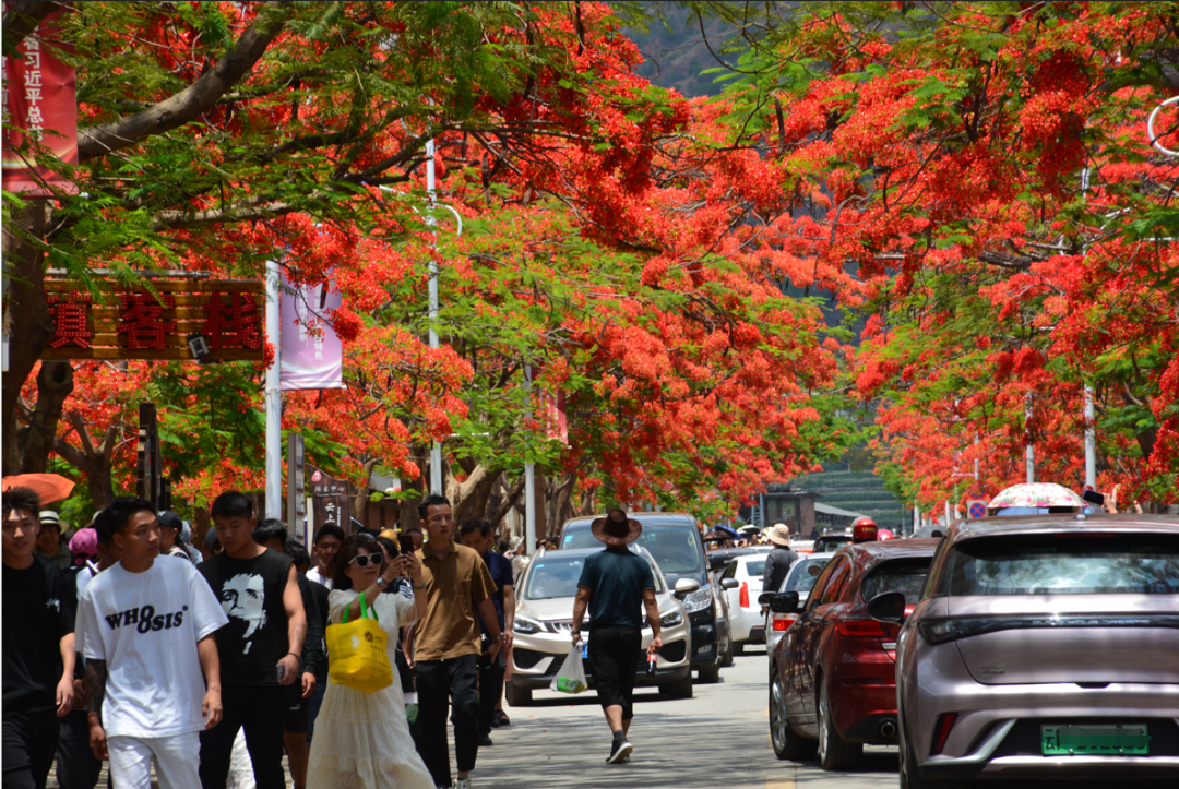 9:00—11:00,赏凤凰花开。前往绿汁镇凤凰大道,恰逢花期如火,漫步凤凰花林荫道,身着轻装打卡旅拍,在热烈绚烂的花景中定格浪漫瞬间。