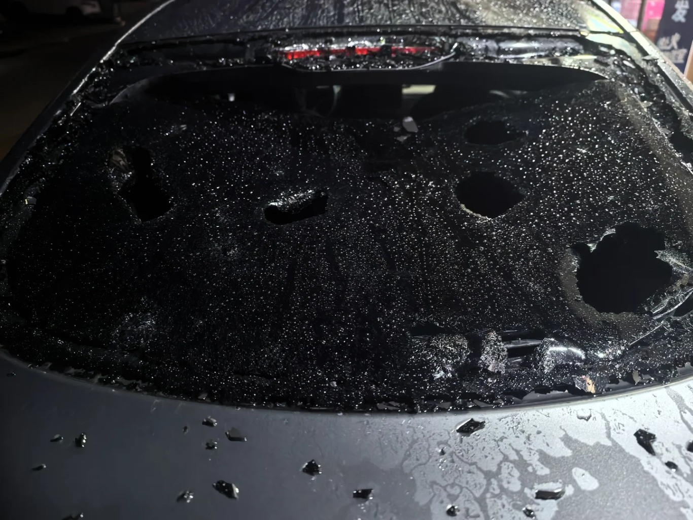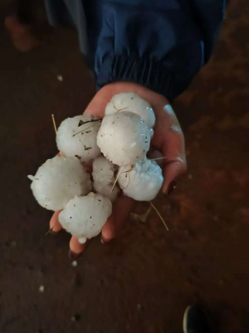 4月24日19点左右,昆明市嵩明县下起鸡蛋大的冰雹