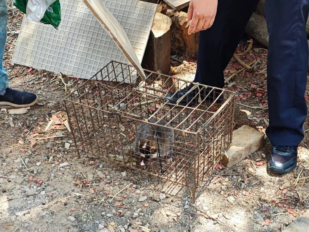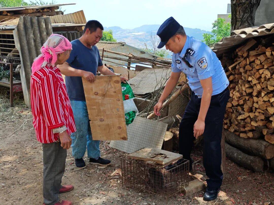 村民已将这只“小花猫”放在笼子里