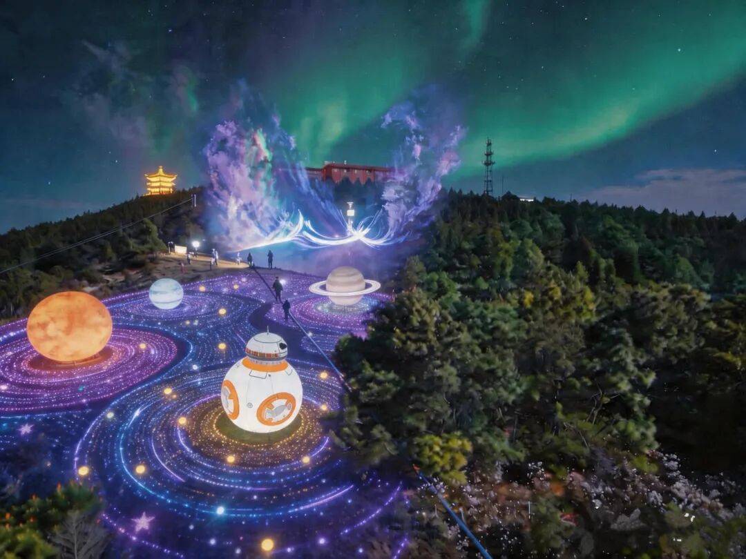 玉溪龙马仙山之夜,万亩玫瑰灯海宛若星河。