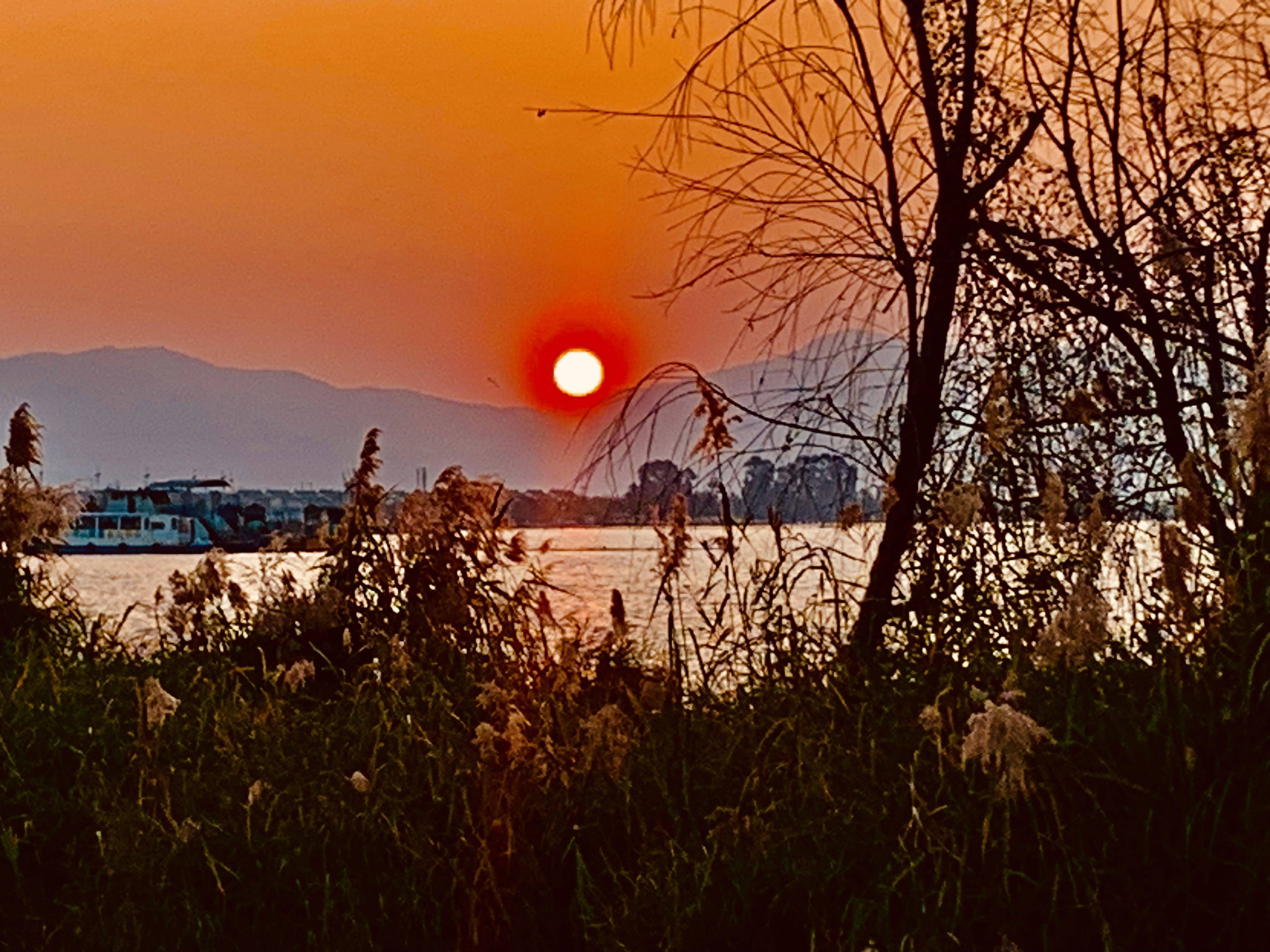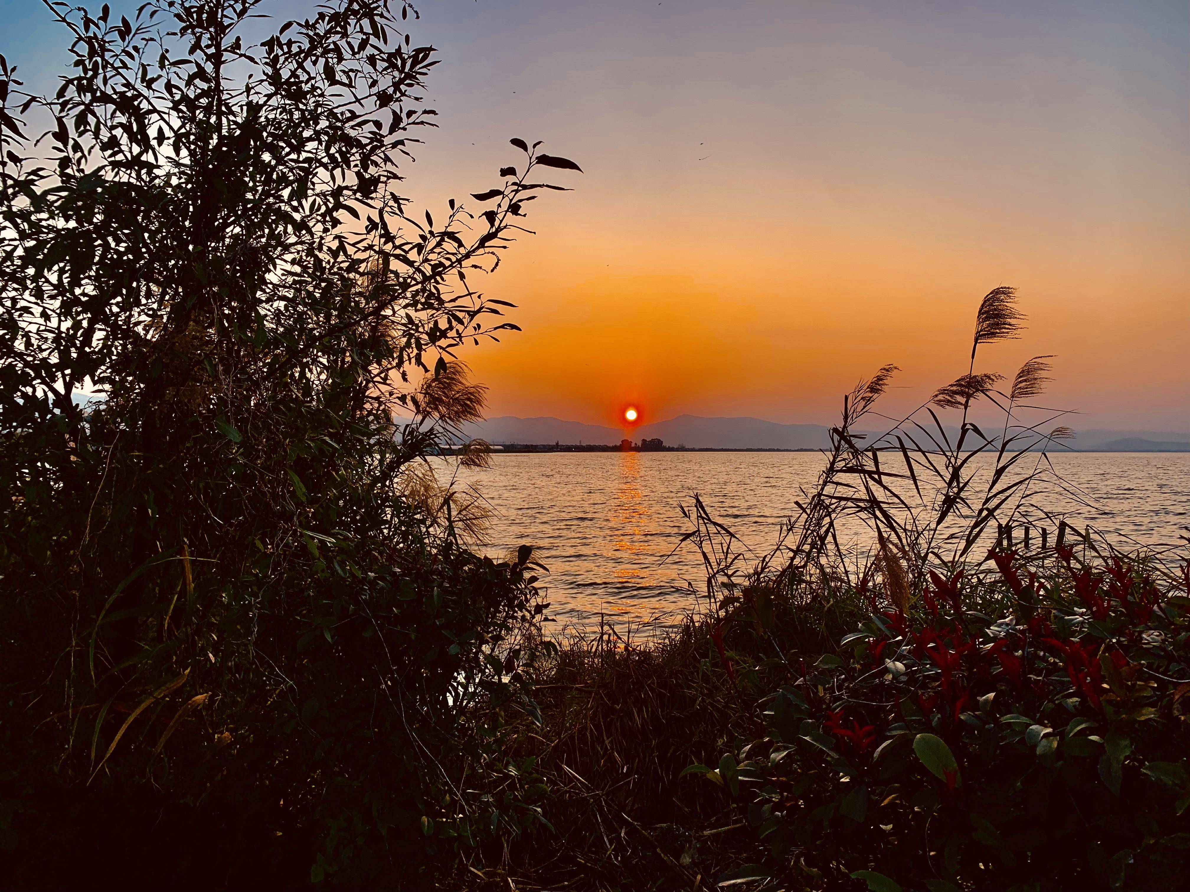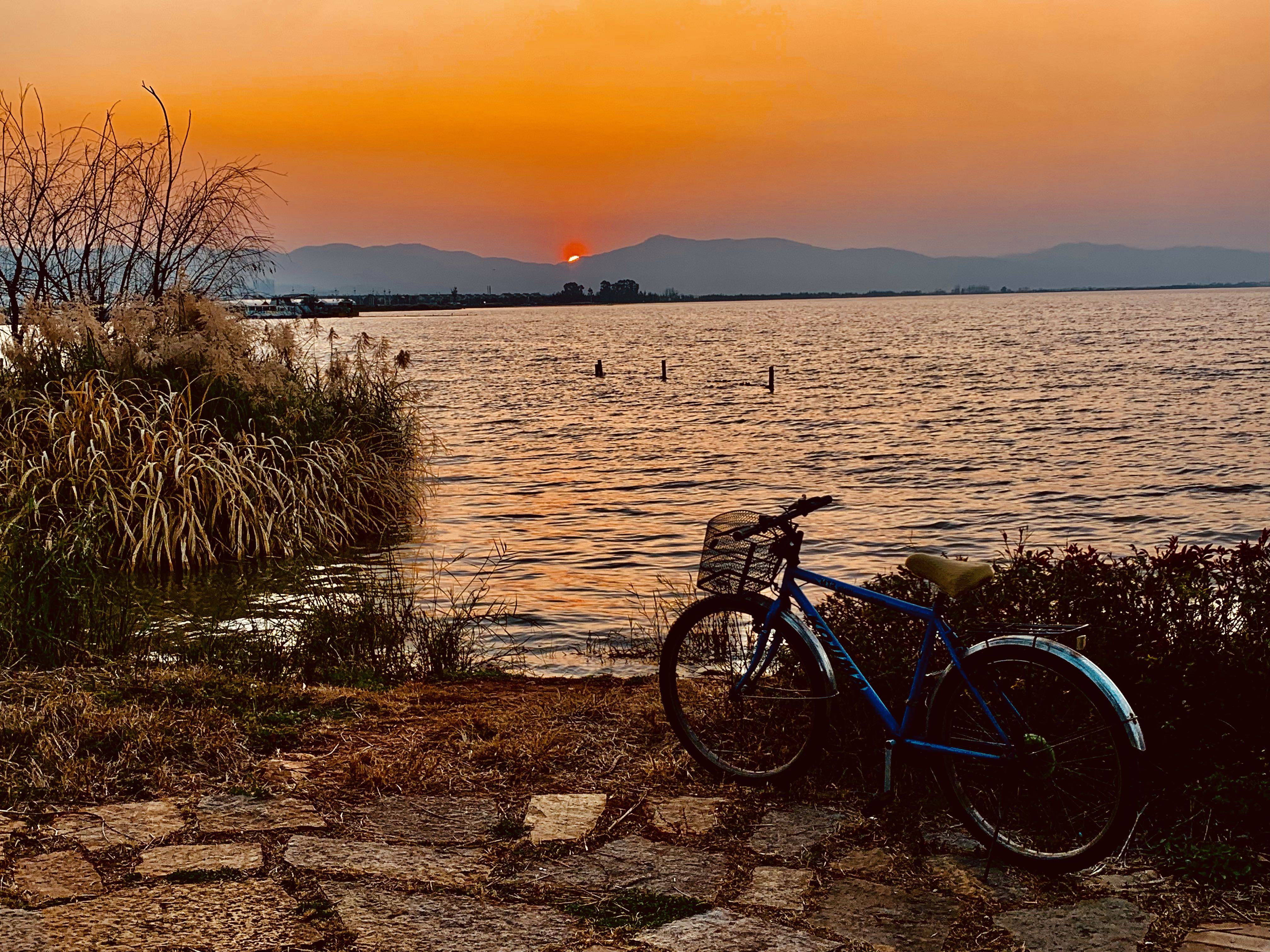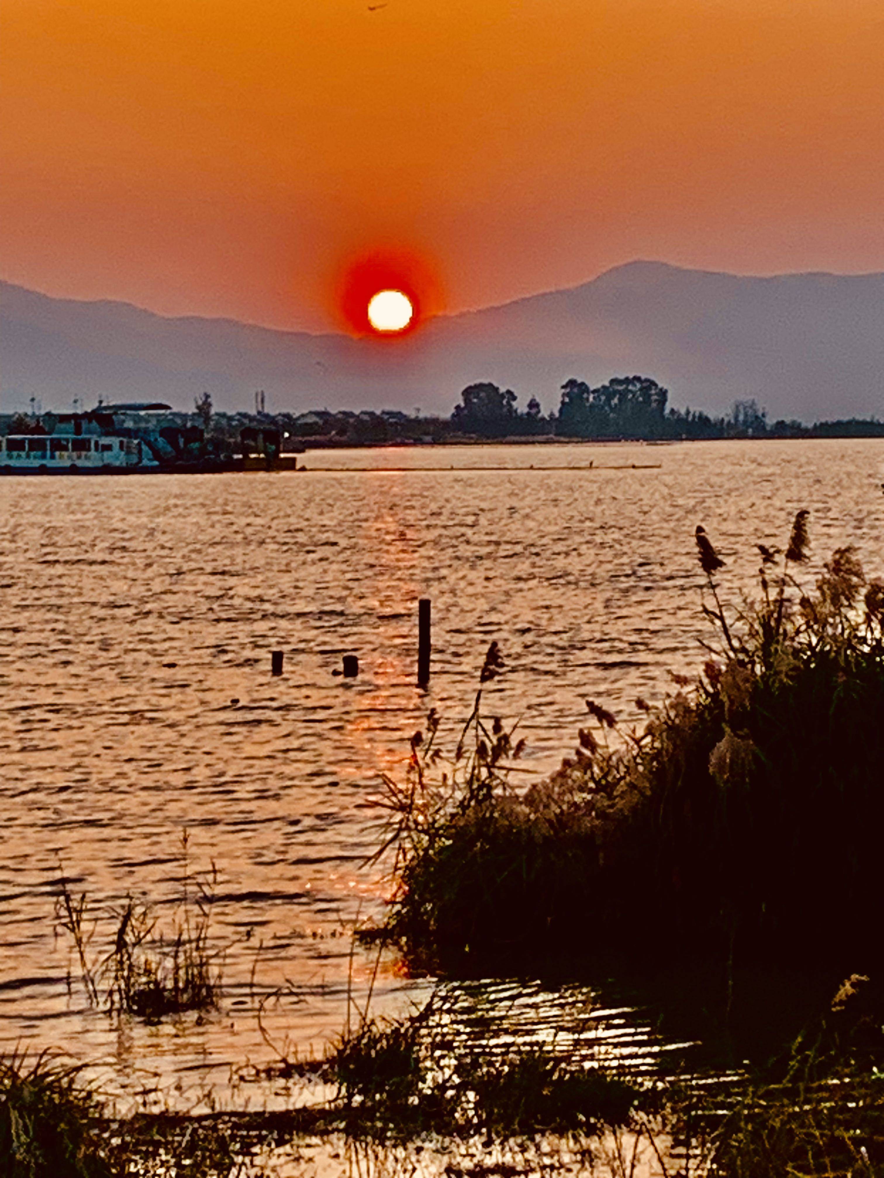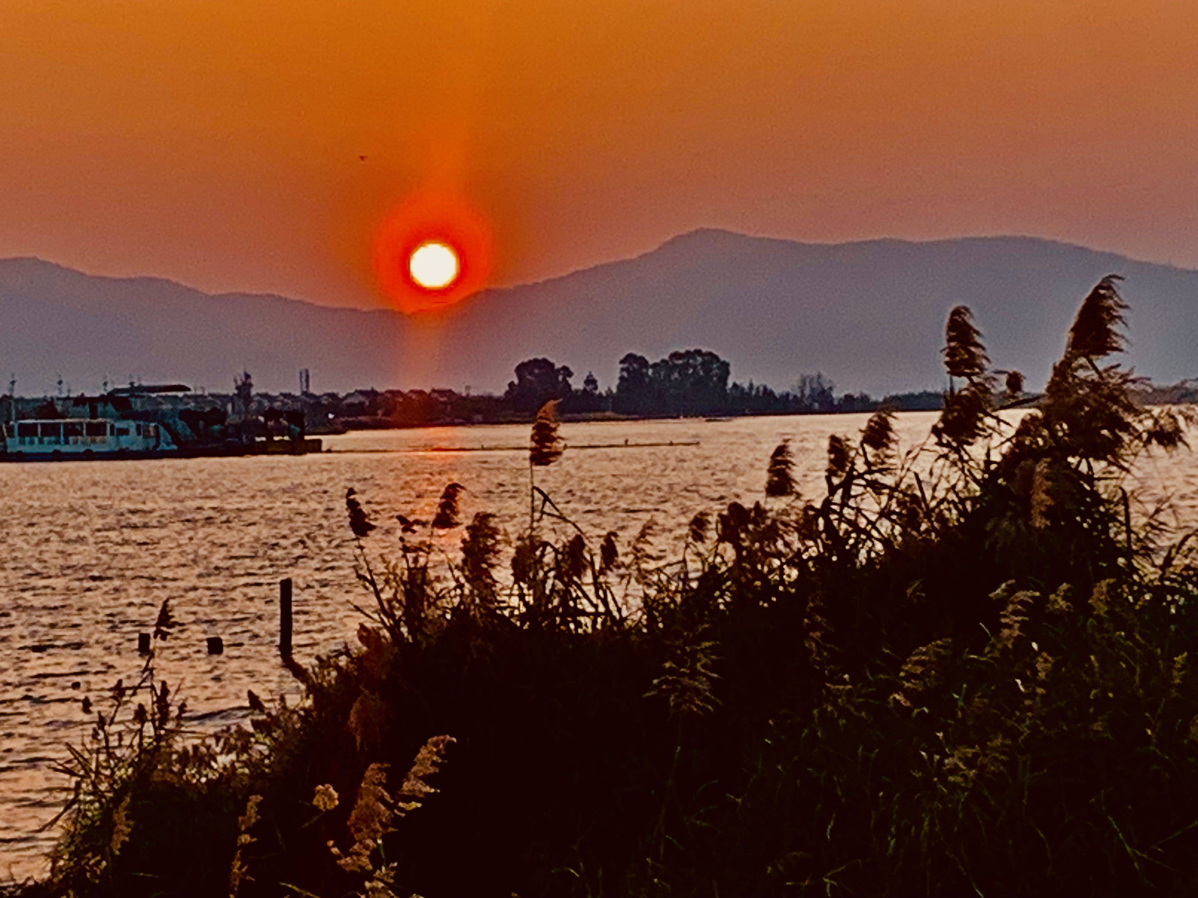[今日通海] 落日余晖如一个巨大的火球,染红了天空,映照出岁月的静好