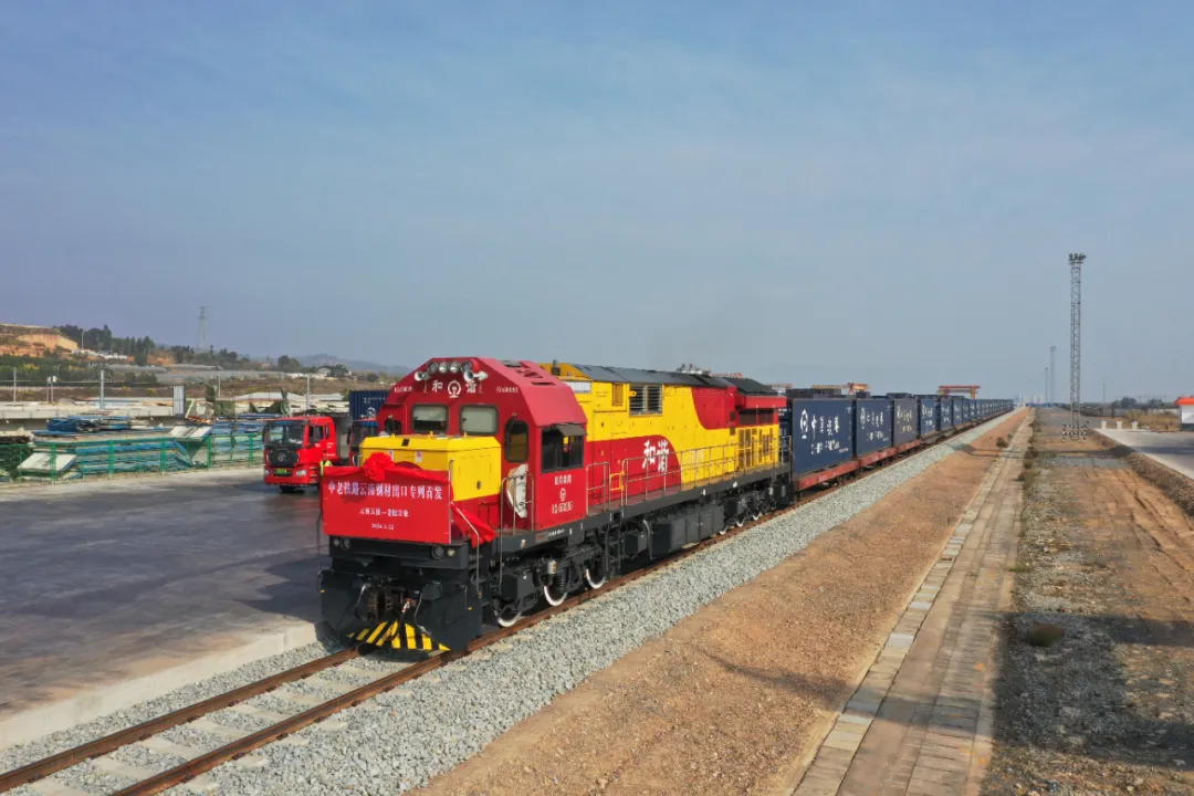中老铁路云南“绿色钢材出口专列”在玉溪研和站首发。邓星瑞 摄(玉溪市融媒体中心资料图)
